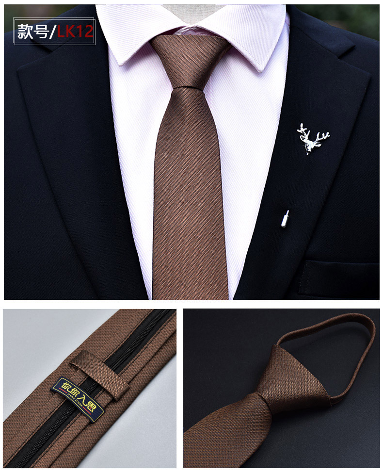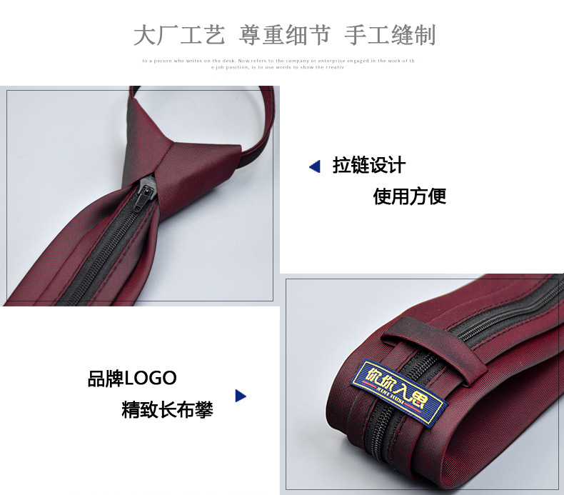 Lazy estilo coreano tirón fácil vino rojo color sólido 6cm calidad personalizada logotipo de la empresa monocromo hombres cremallera collar