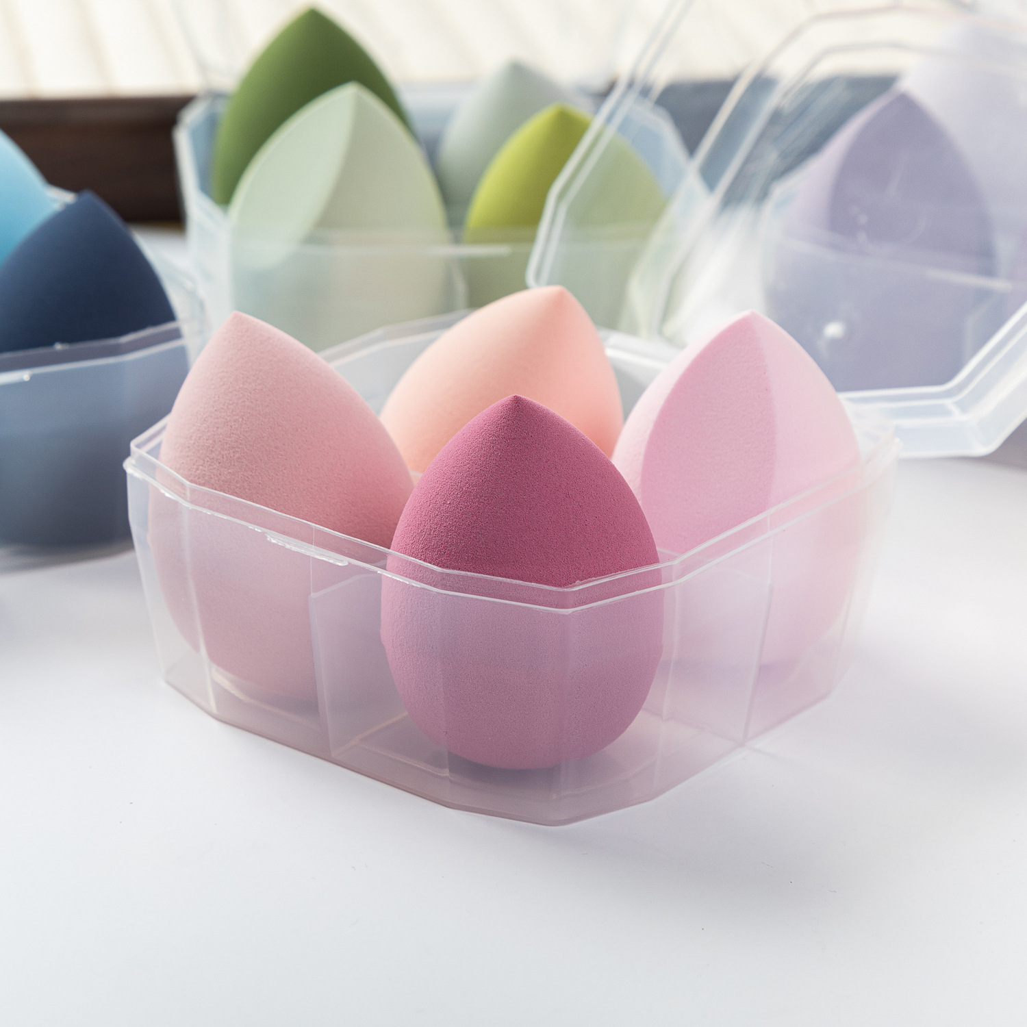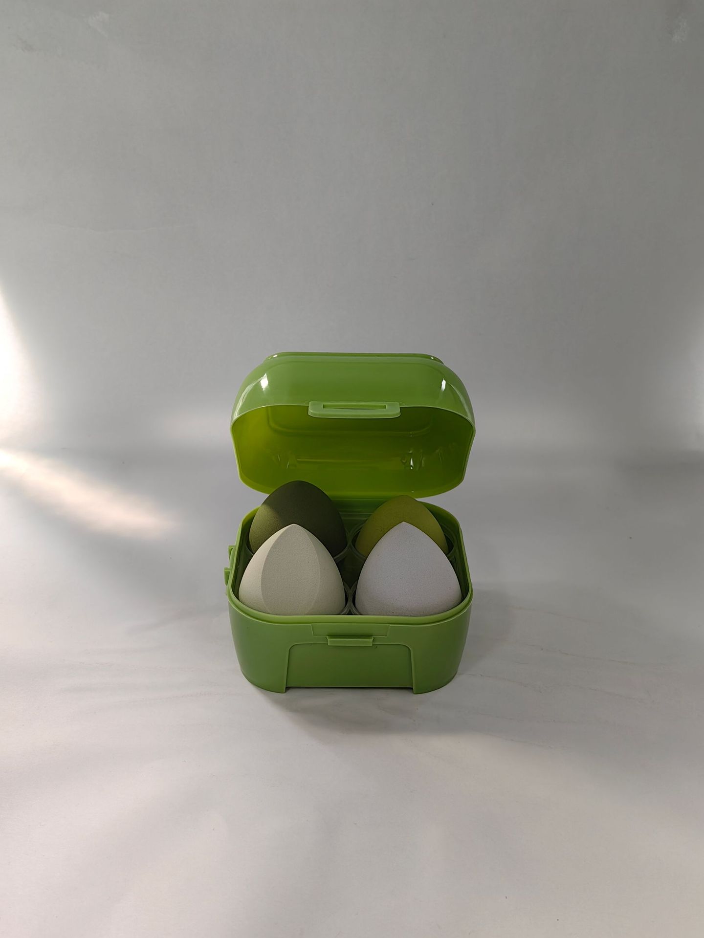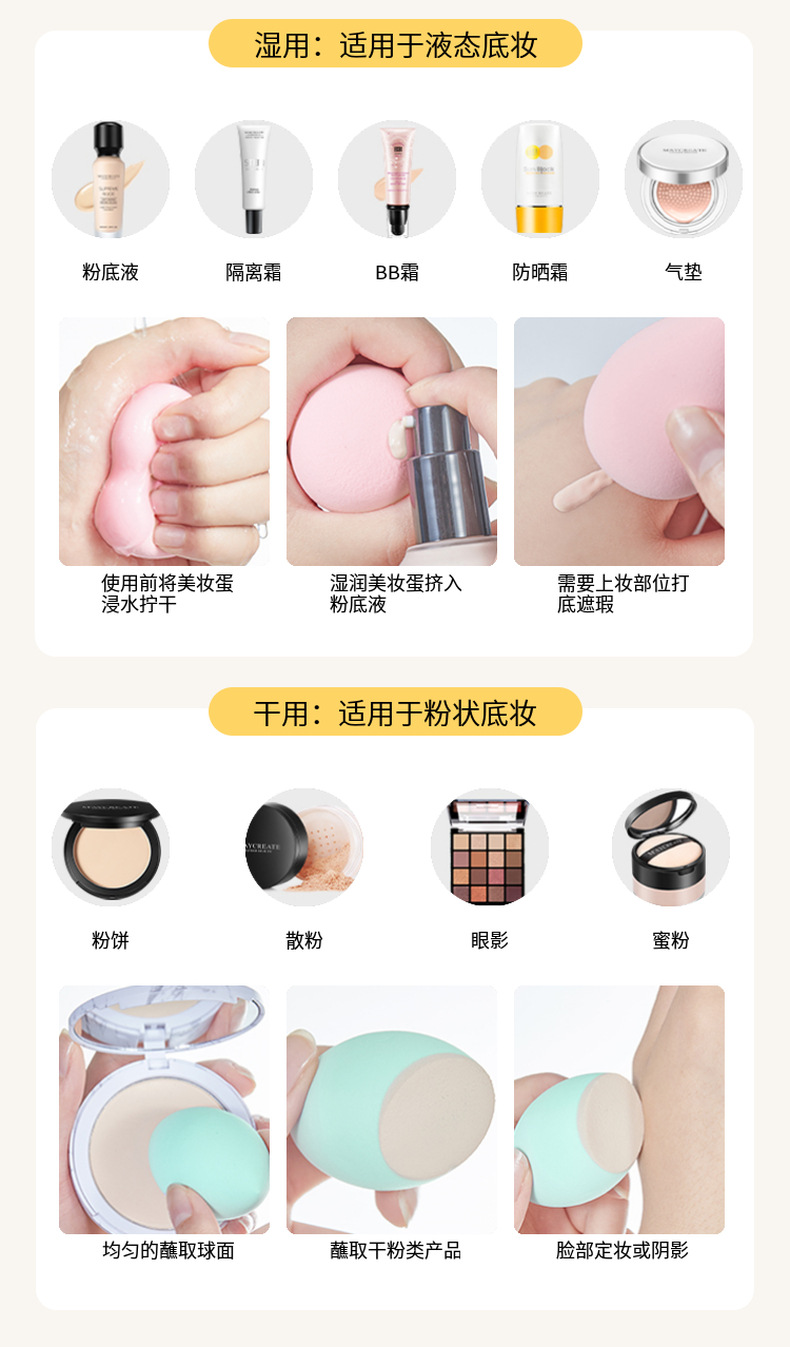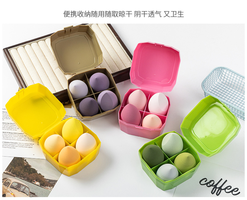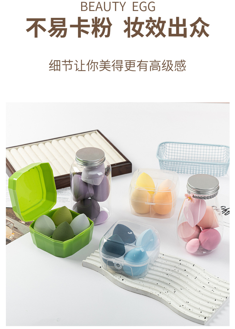 Venta directa de fábrica Botella a la deriva Huevos de belleza No comas polvo Caja de almacenamiento Cosmética Esponja Maquillaje Puff Seco y húmedo