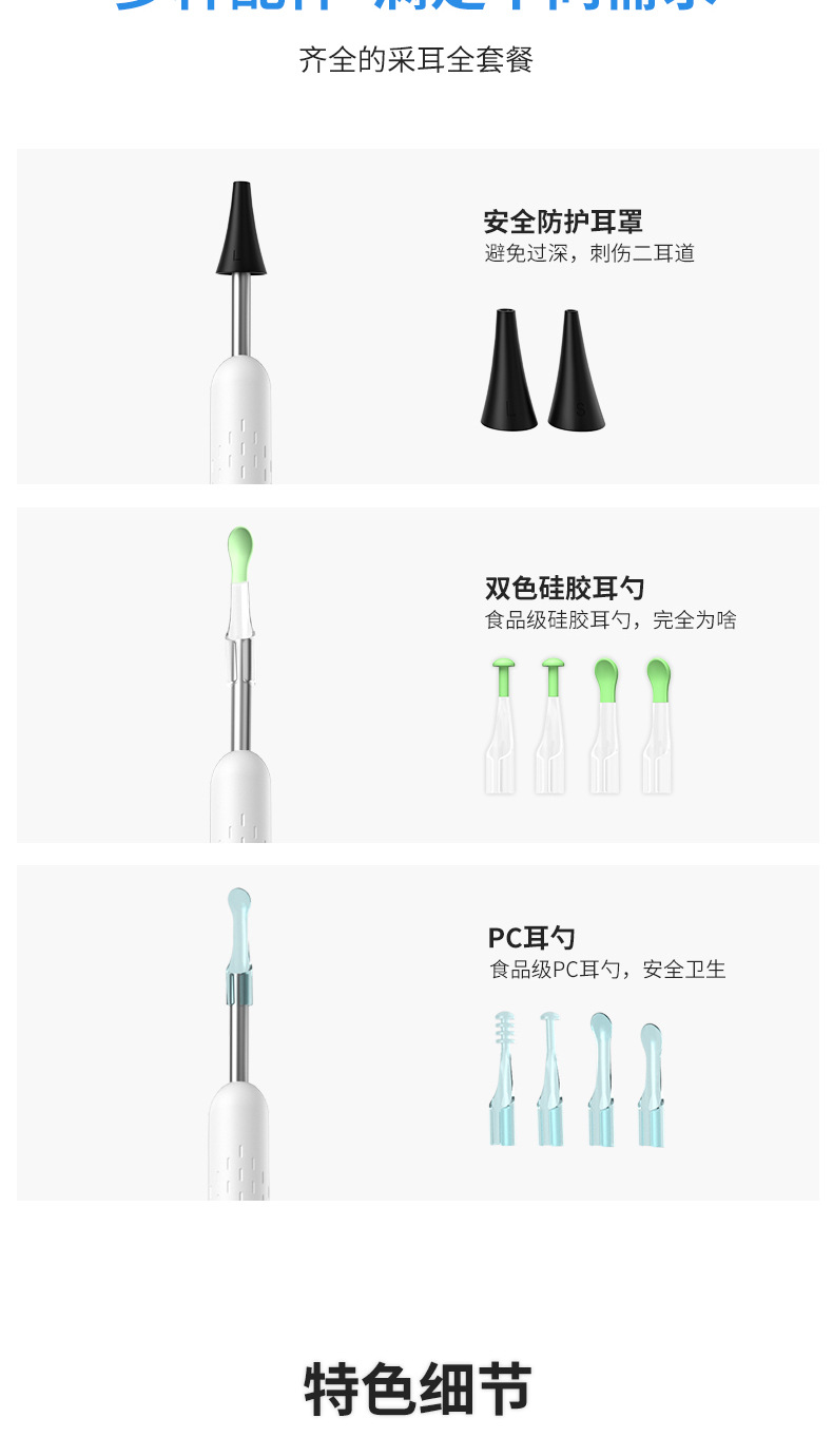 | Tipo de cuchara de oreja | Brillante,Juego de cuchara de oreja,Con zoom |