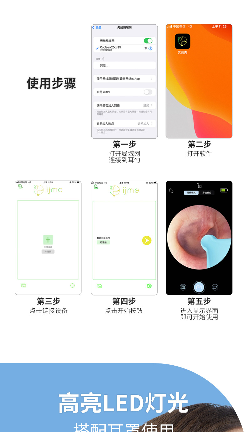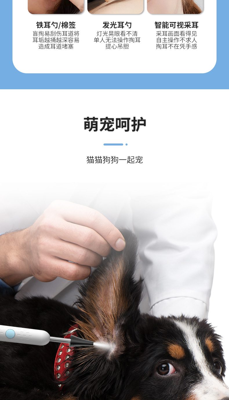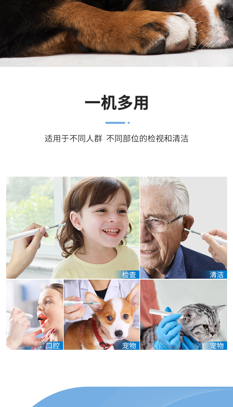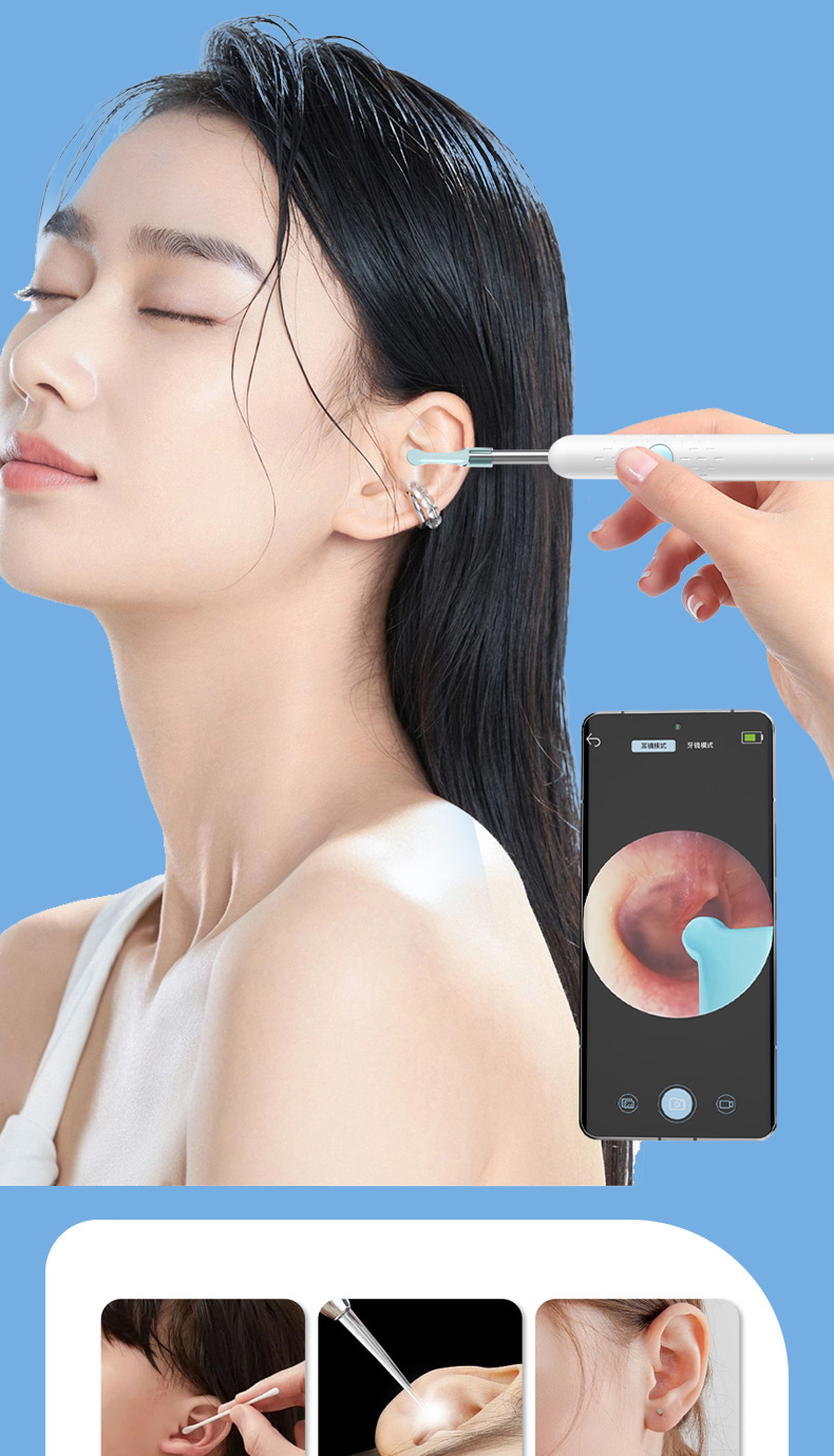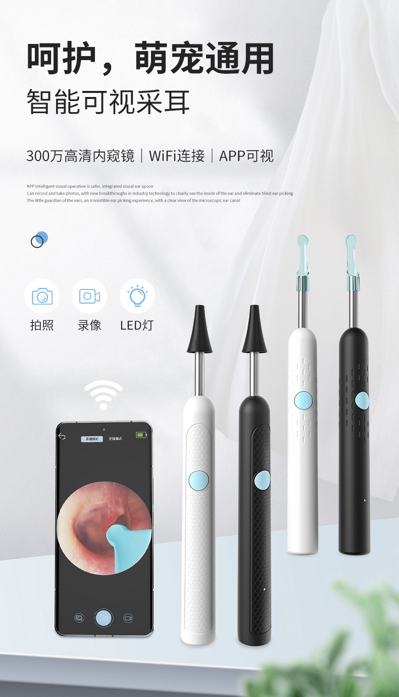 Cuchara de oreja visual Endoscopio visual lindo para mascotas Cuchara de oreja inteligente Odoscopio wifi HD Oído Cuchara de oreja visual