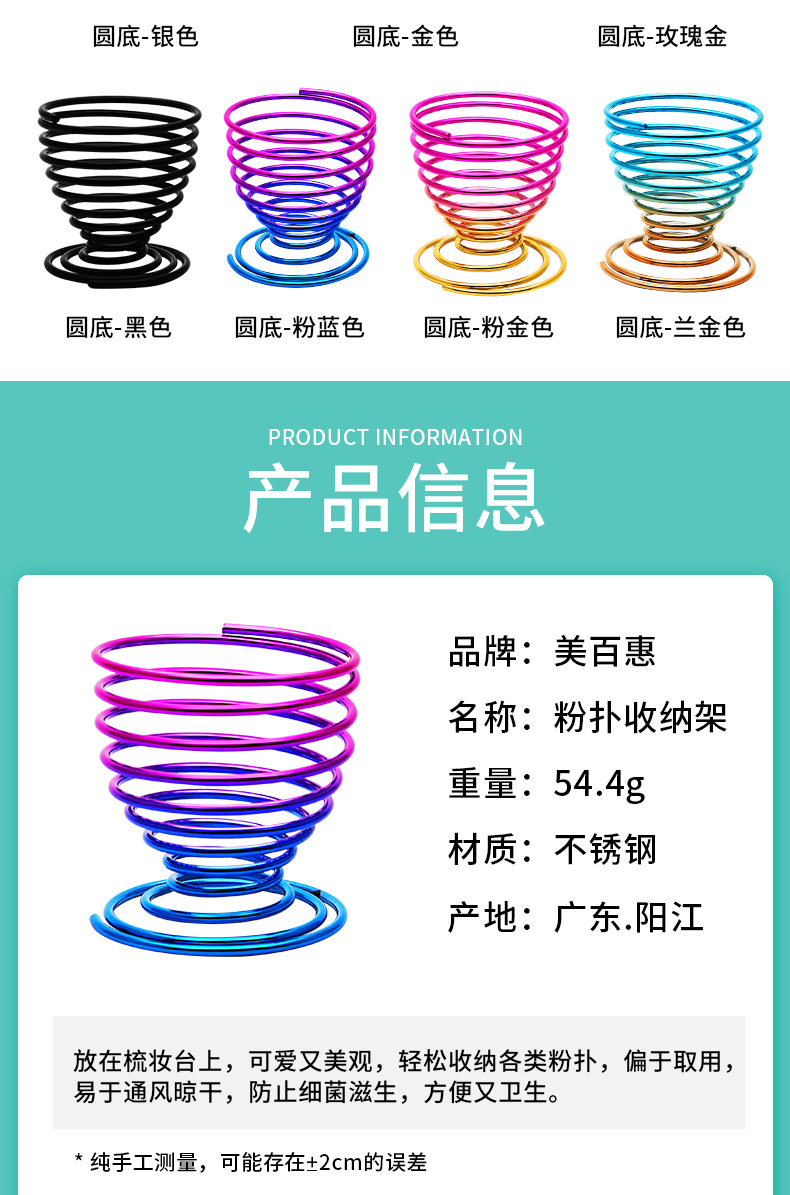 | Cable | Soporte de borla de polvo de metal, soporte de huevo de maquillaje, soporte de borla de primavera |