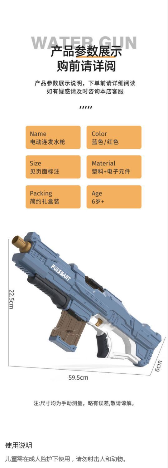 Feiying 998 automático continuo pelo eléctrico pistola de agua con un solo clic rifle explosivo transfronterizo verano vacaciones de verano juguetes de agua