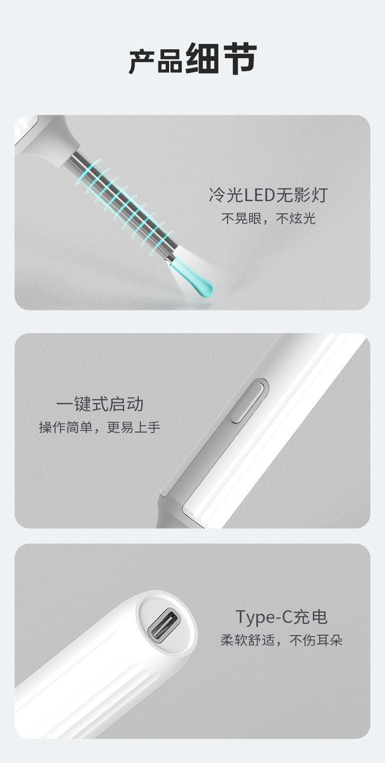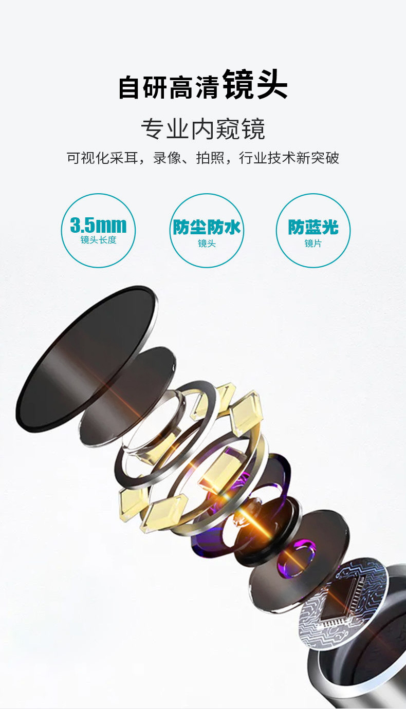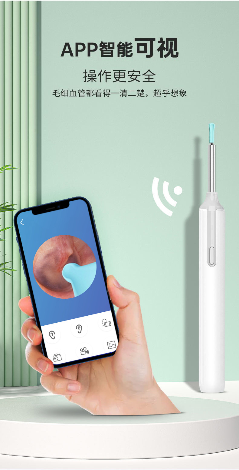 Pala para los oídos visible, endoscopio inteligente de alta definición con luz, pala para los oídos inalámbrica, herramienta para recoger los oídos