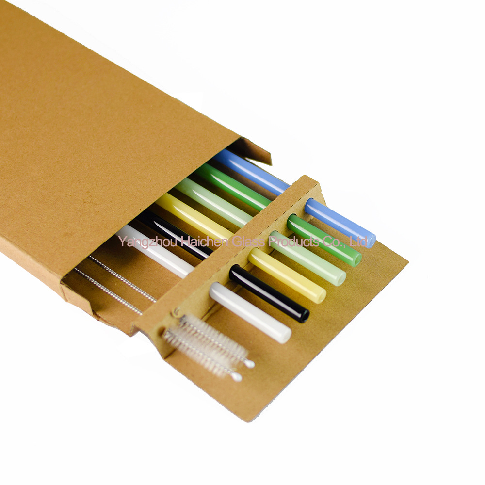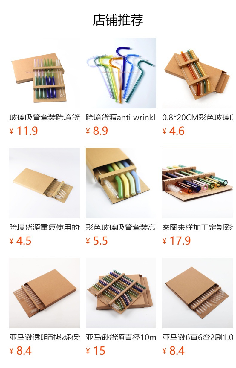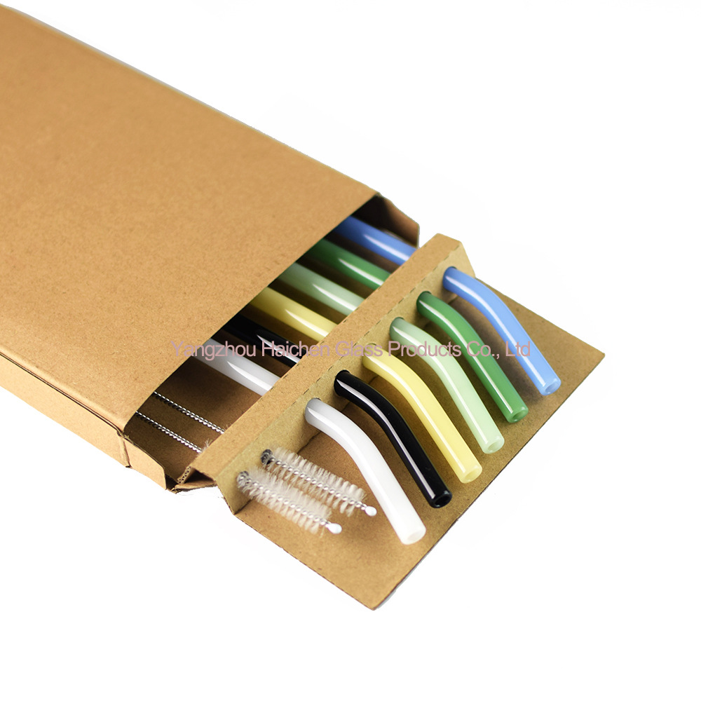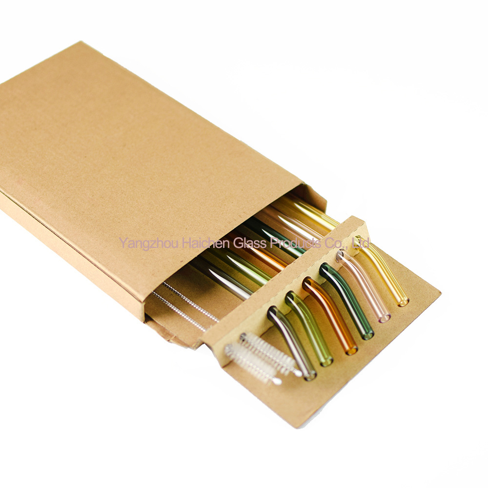 Amazon Venta caliente manchado traje de paja vidrio protección ambiental resistente al calor bebida leche codo 0,8*20cm6 tubo 2 Cepillos