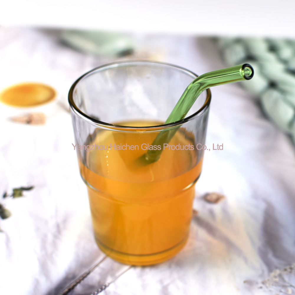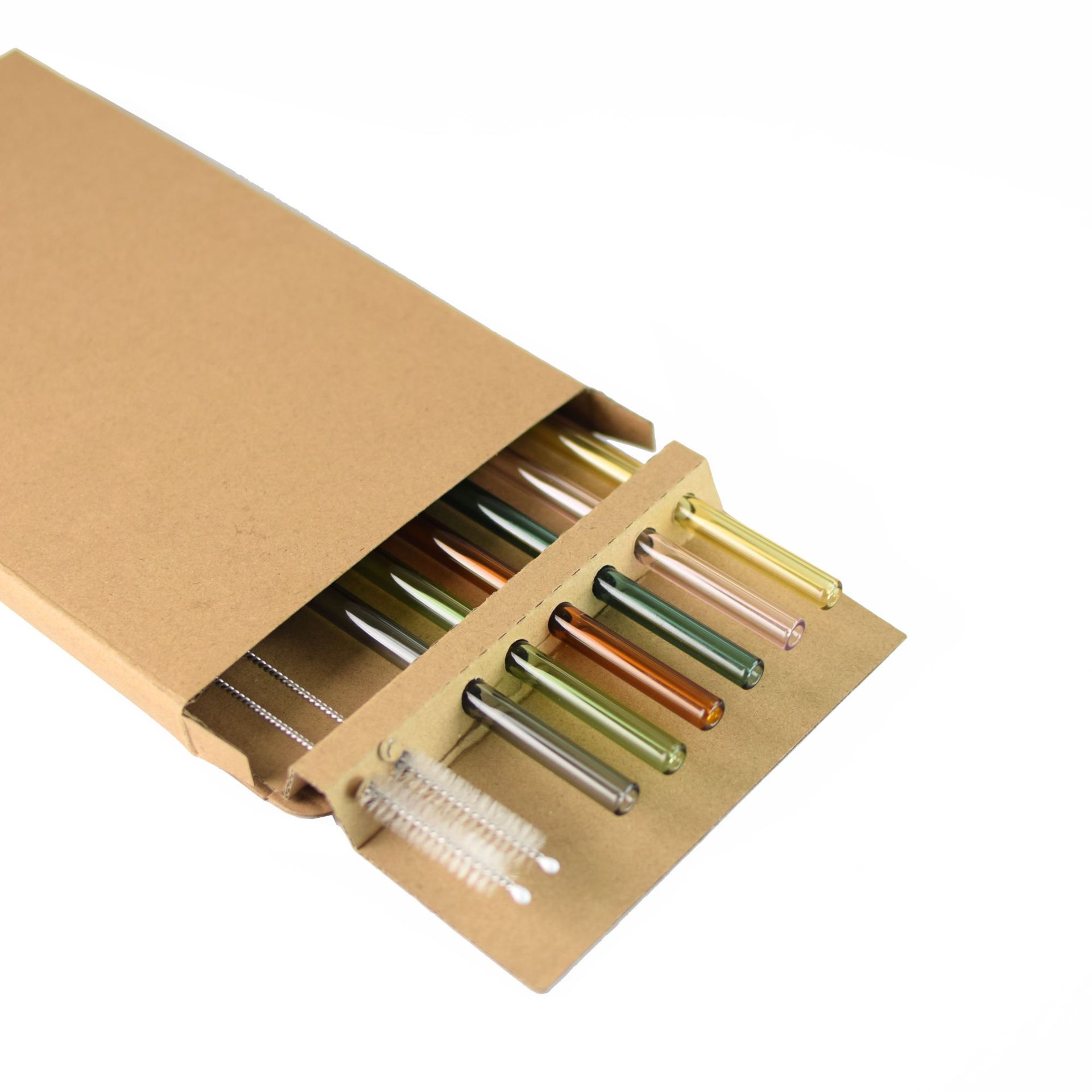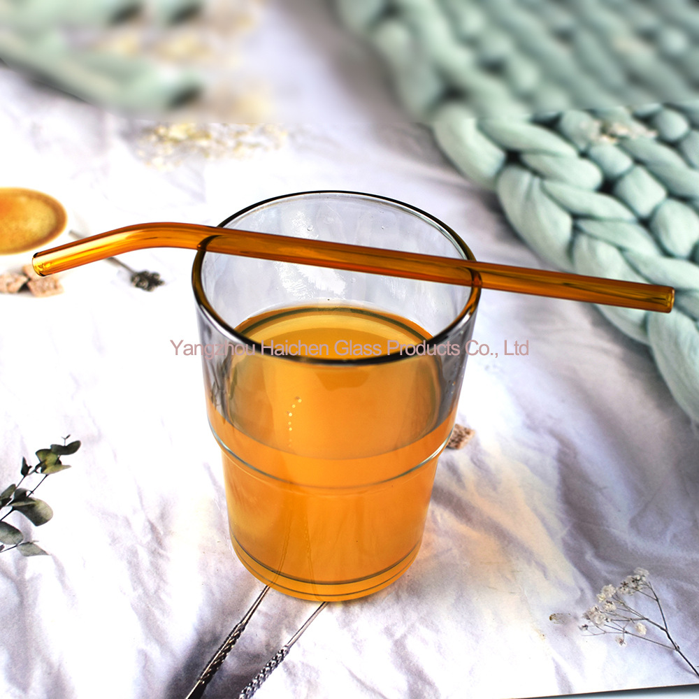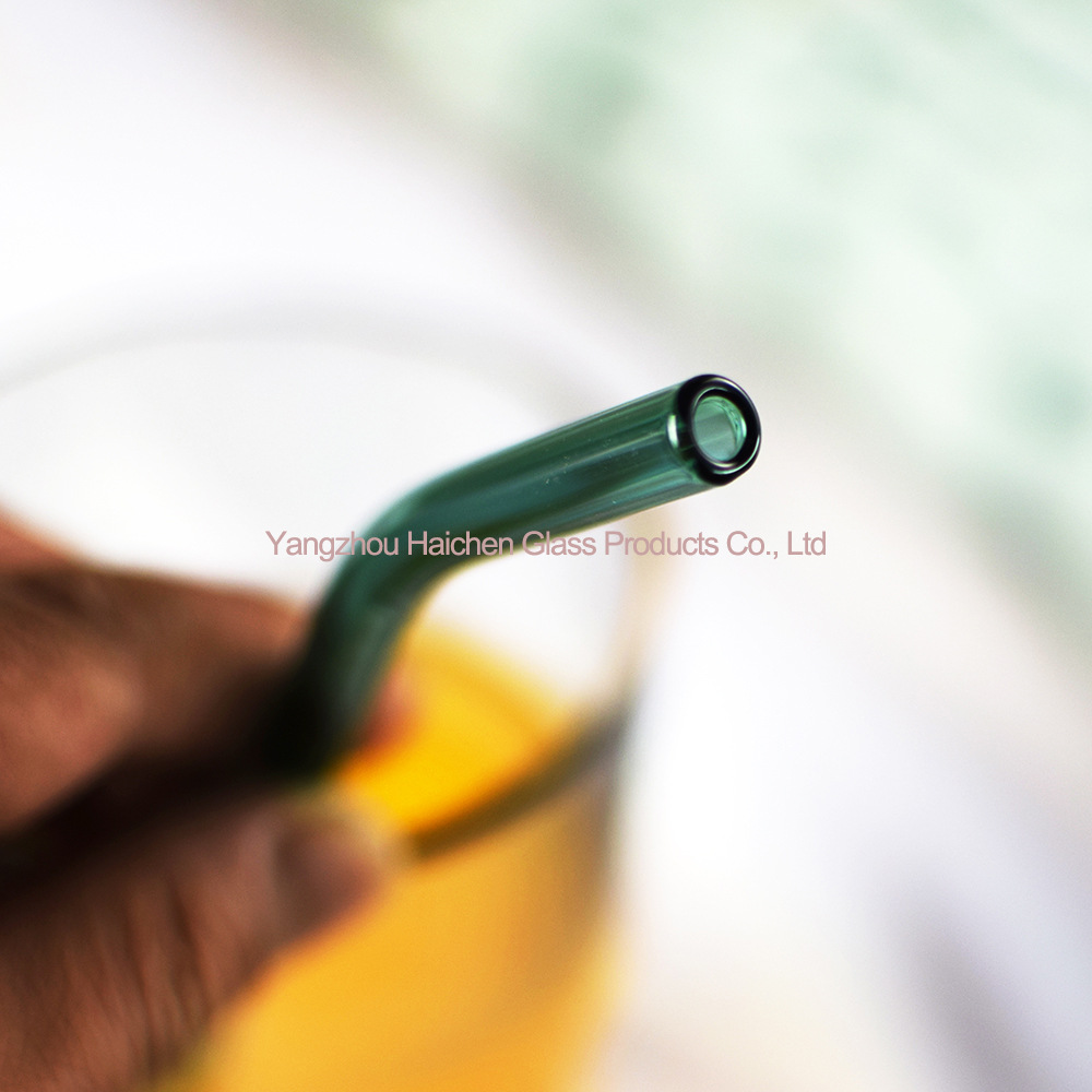 Amazon Venta caliente manchado traje de paja vidrio protección ambiental resistente al calor bebida leche codo 0,8*20cm6 tubo 2 Cepillos