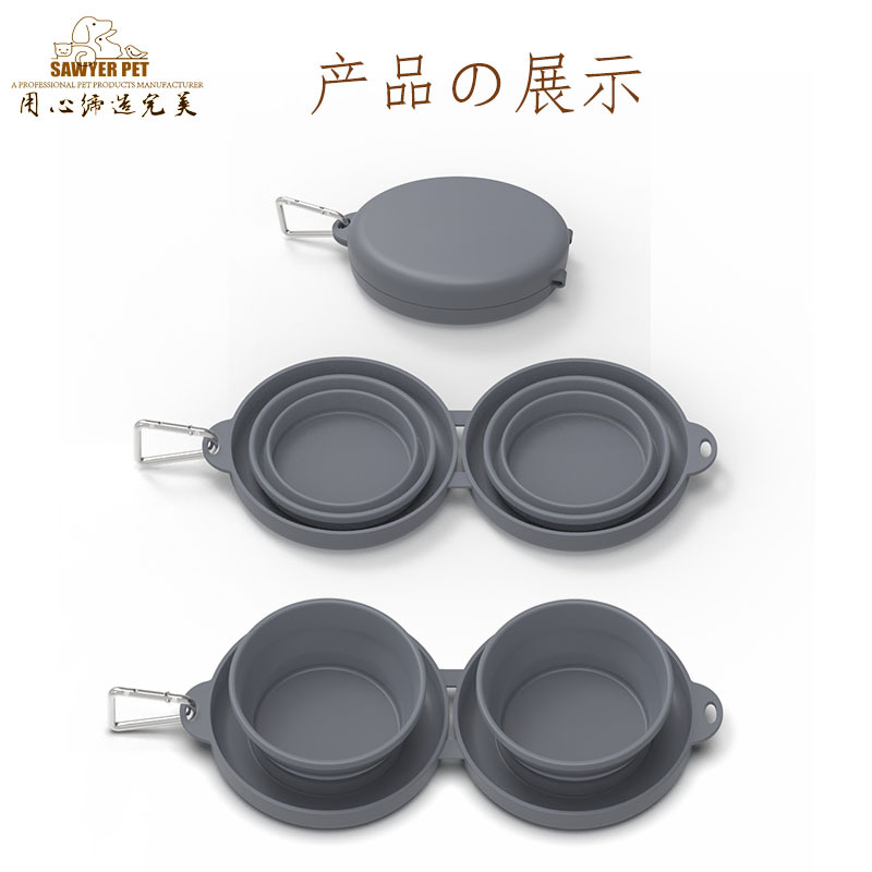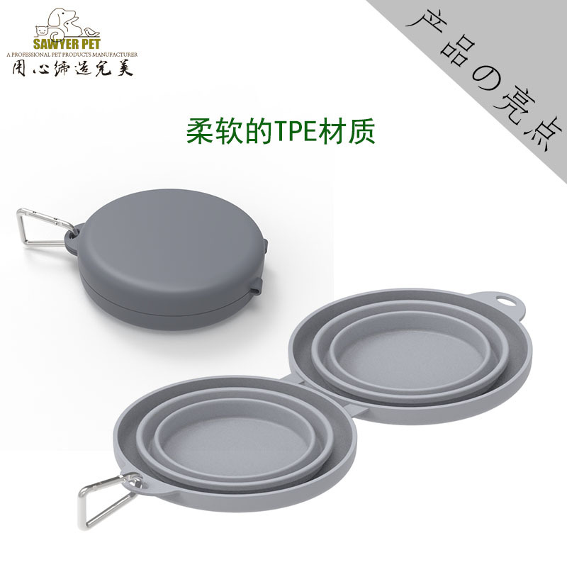 TPE tazón plegable portátil al aire libre para mascotas Tazón doble para gatos tazón de silicona