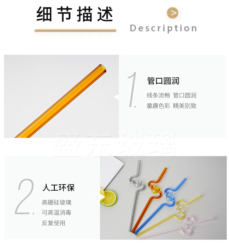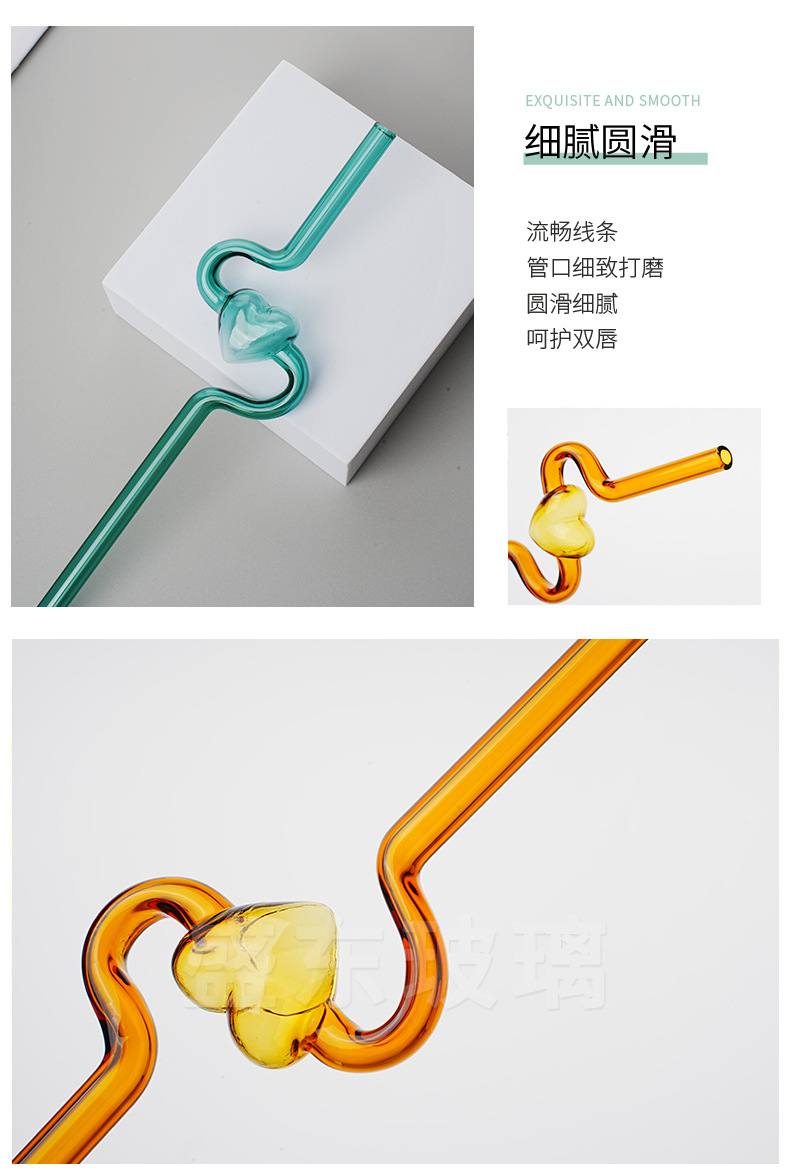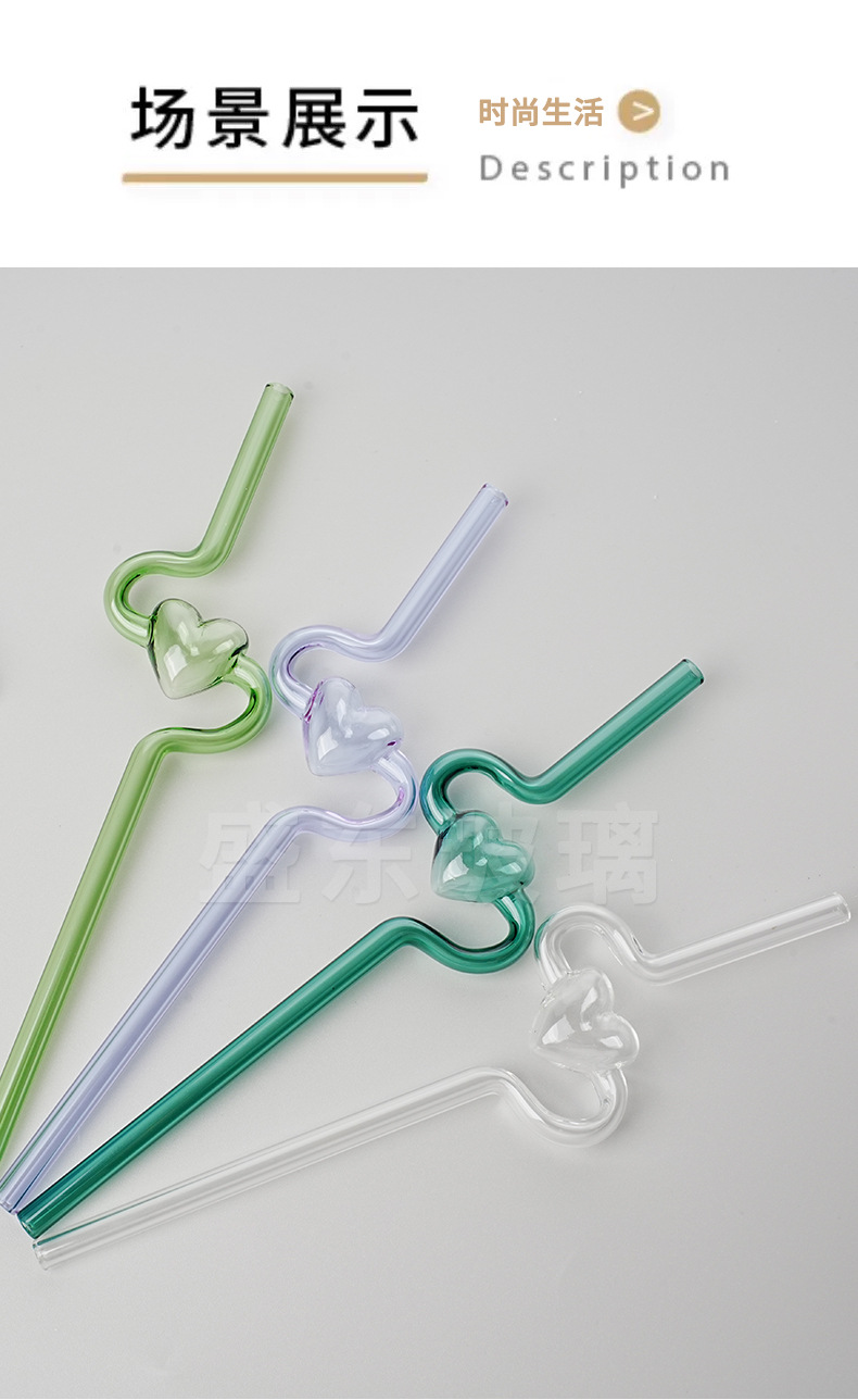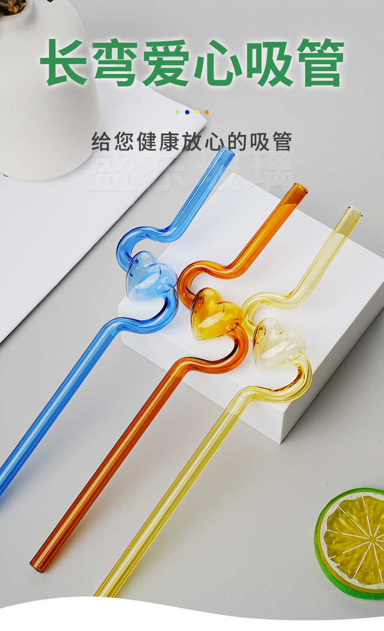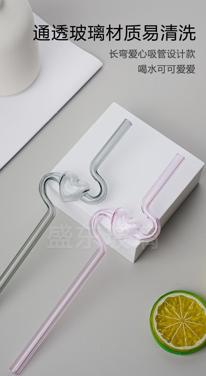 Nueva alta borosilicato corazón largo curvado paja chica corazón transparente paja hogar leche jugo paja tubo