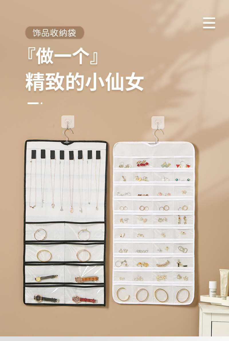 80 bolsa de almacenamiento de rejilla joyería Almacenamiento de joyas bolsa colgante no tejida collar de doble cara bolsa de organización de joyas caja de almacenamiento a prueba de polvo