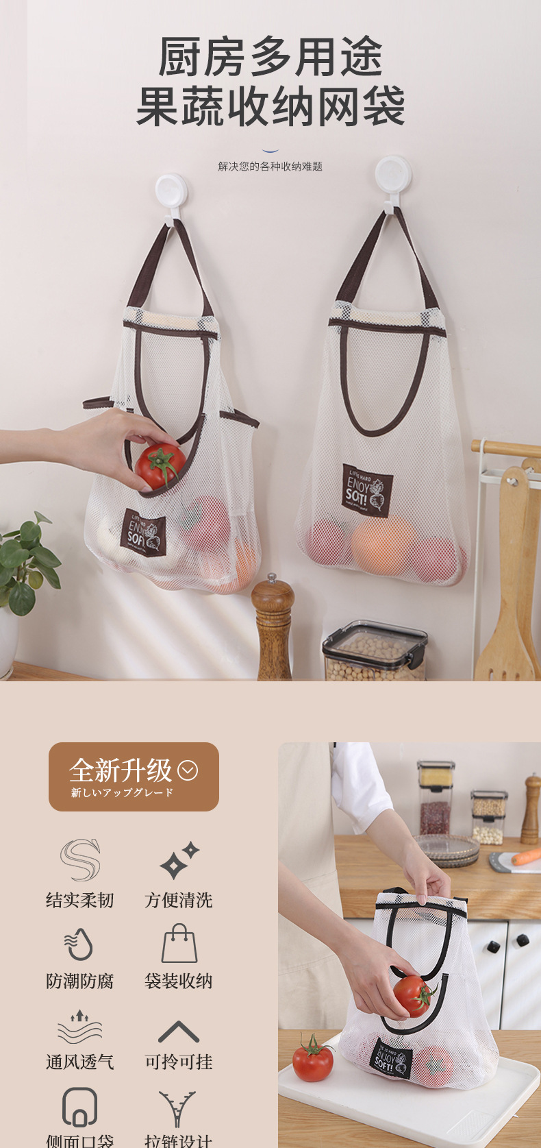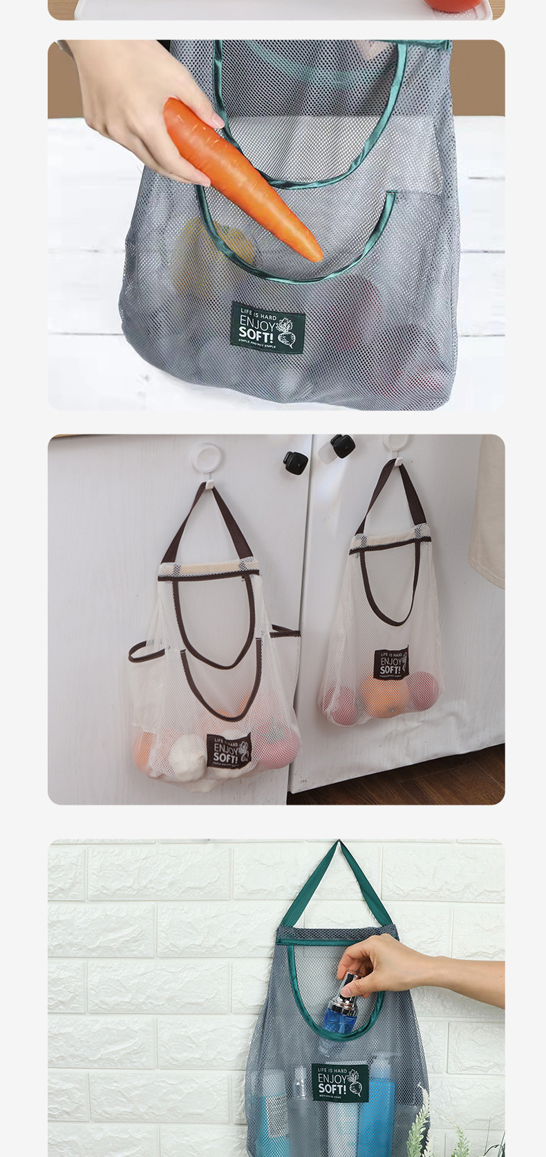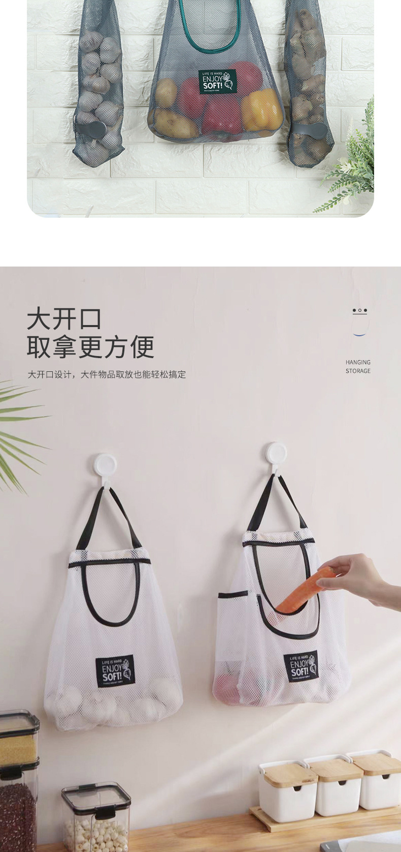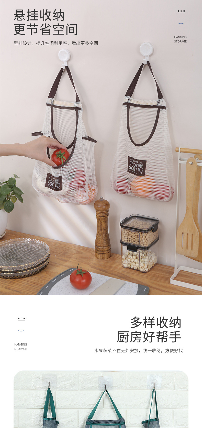 Bolso de mano montado en la pared, bolsa colgante multifuncional para frutas y verduras, bolsa de malla para almacenamiento con cabeza de ajo, bolsa de almacenamiento para cocina, jengibre y cebolla