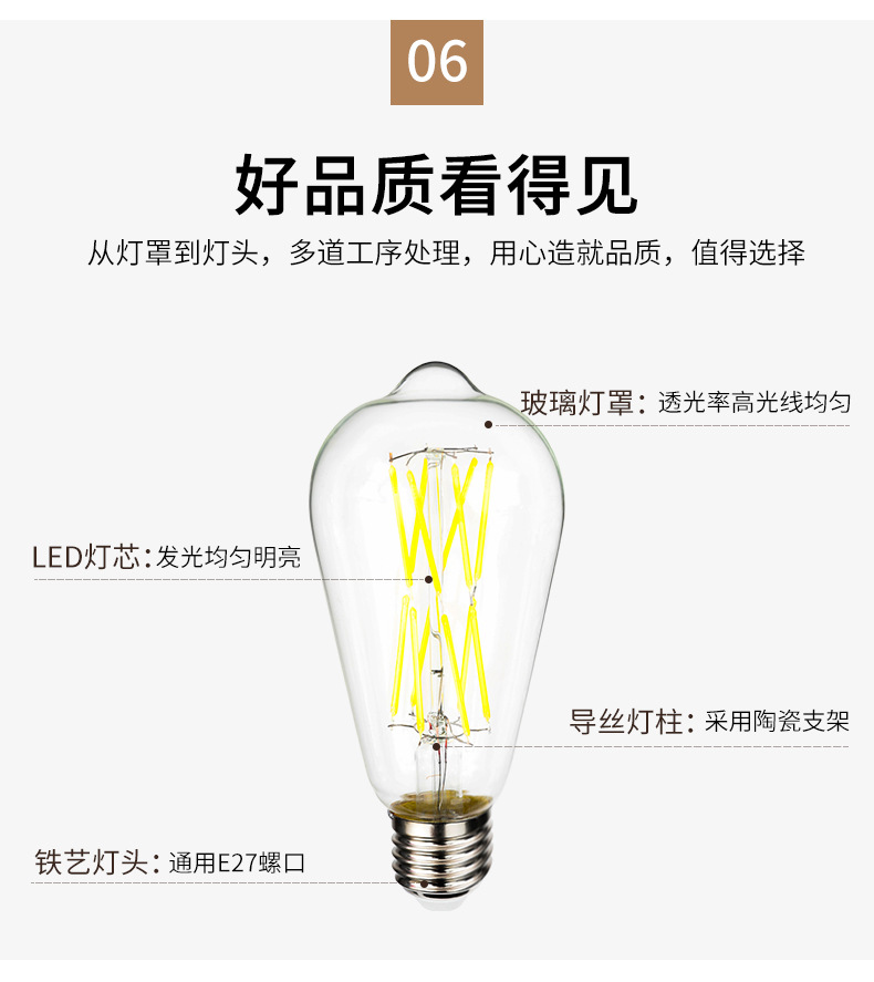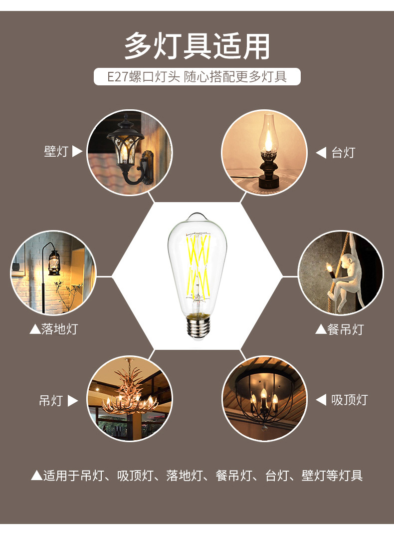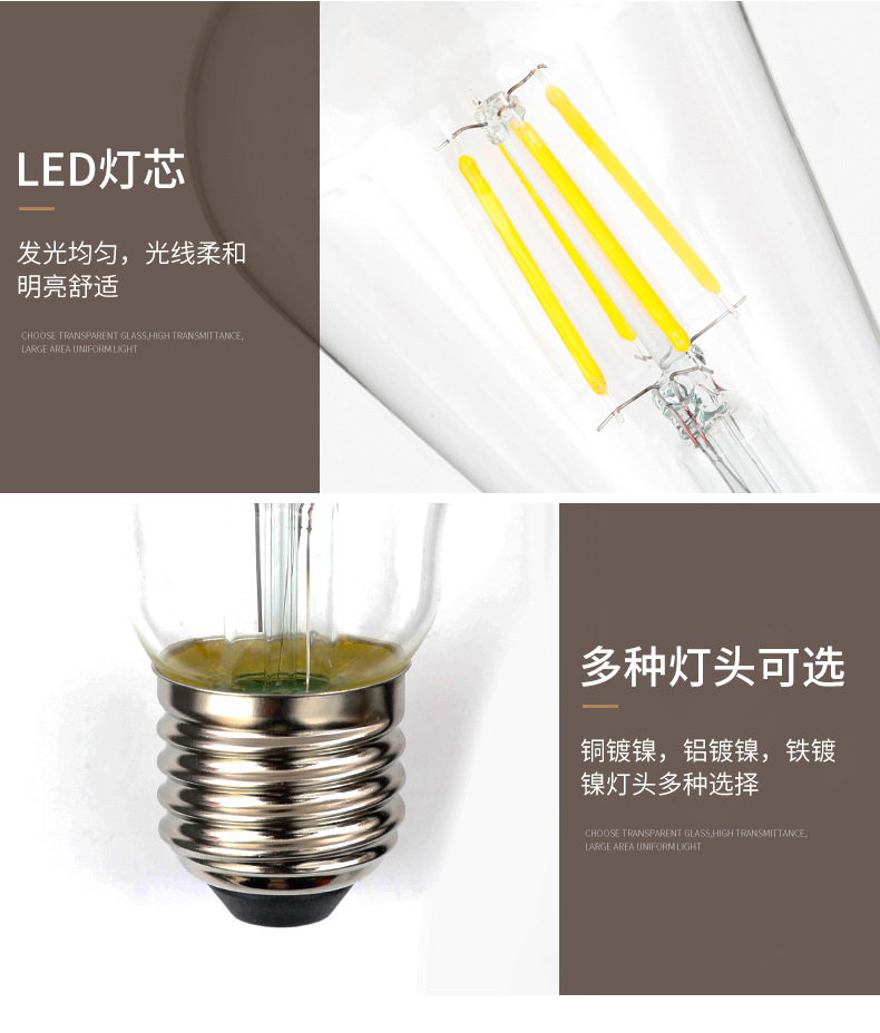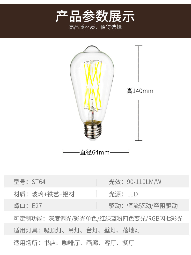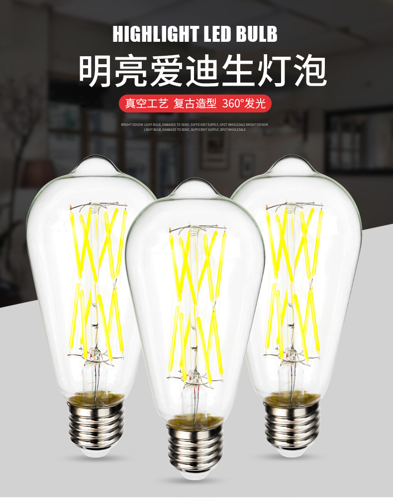 Edison bombilla E27 lámpara de filamento transparente creativa st64 retro imitación tungsteno transfronterizo Amazon bombilla led