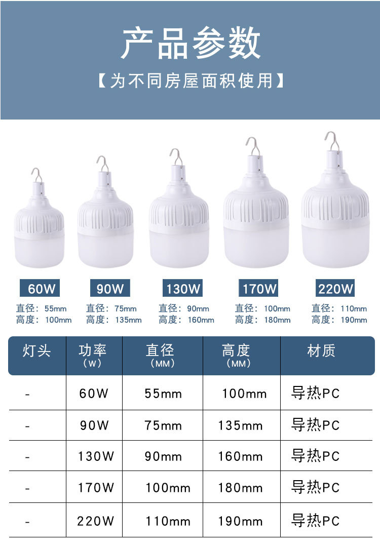 Venta al por mayor de fábrica LED de carga Super brillante bombilla de Emergencia Móvil Mercado nocturno puesto de iluminación ahorro de energía al aire libre Luz de camping