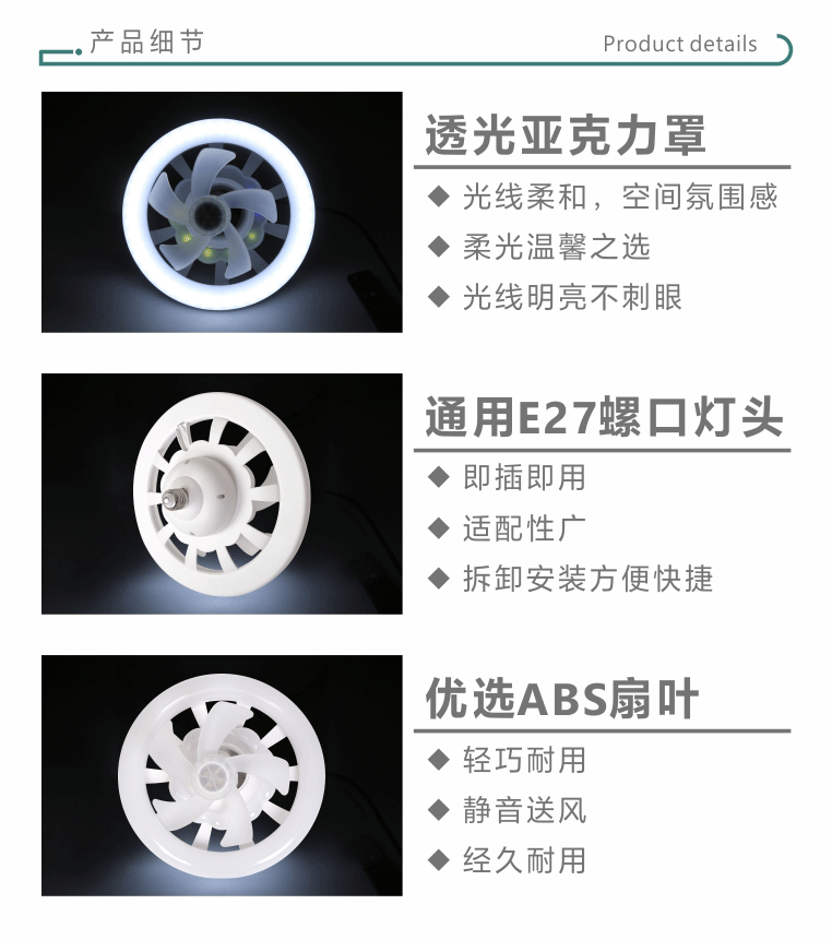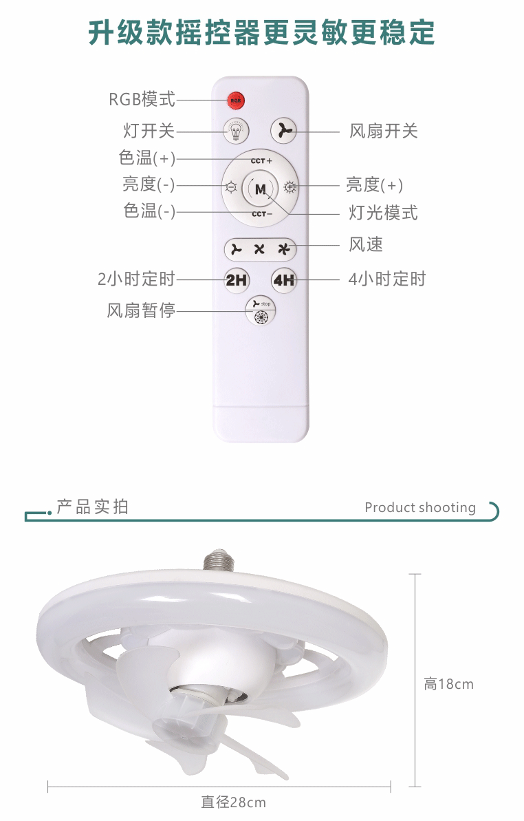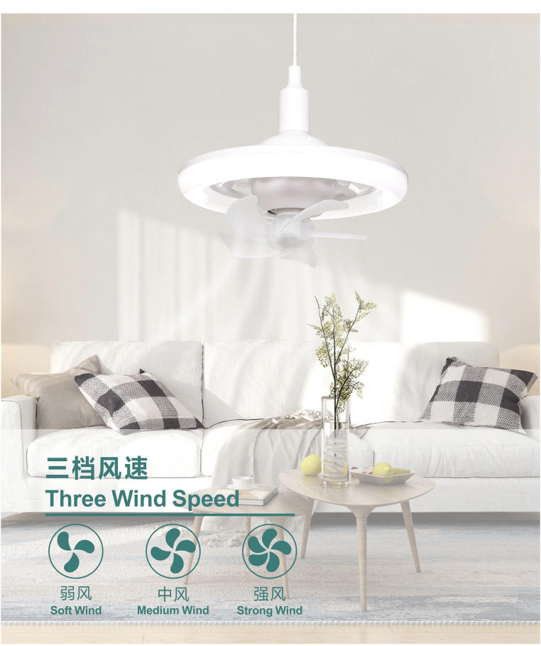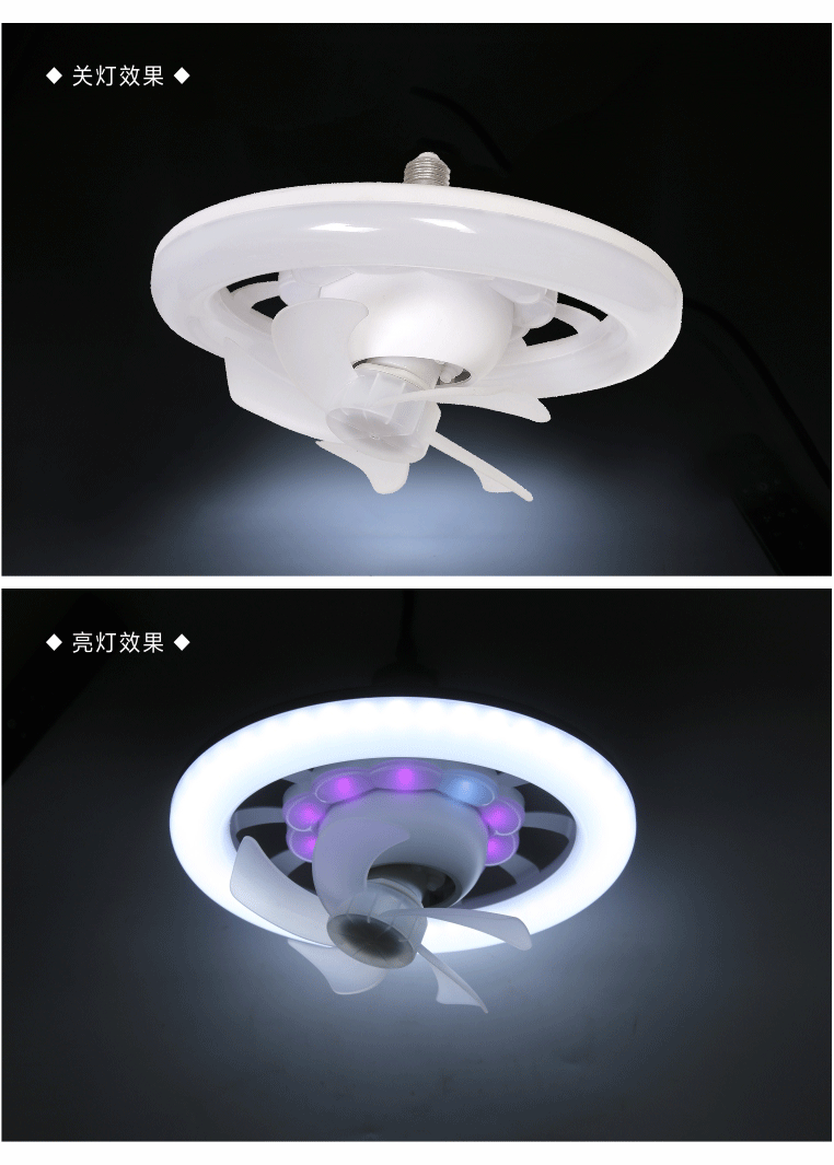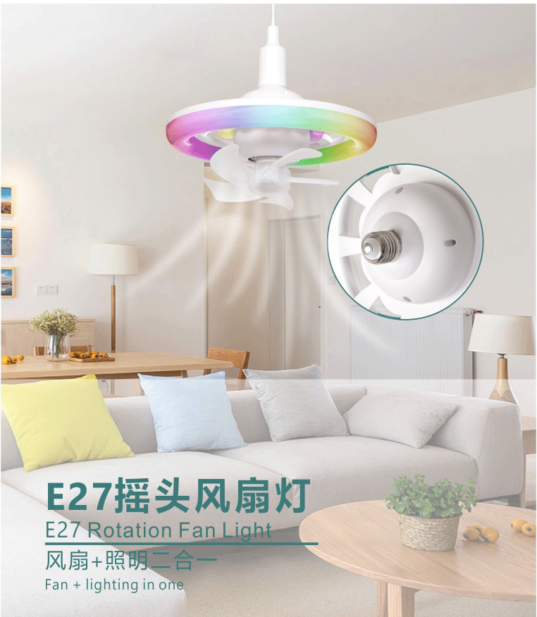 Nuevo tornillo E27 luz del ventilador lámpara de techo de doble propósito bombilla inteligente sacudiendo la cabeza LED ventilador luz cocina baño ventilador de techo