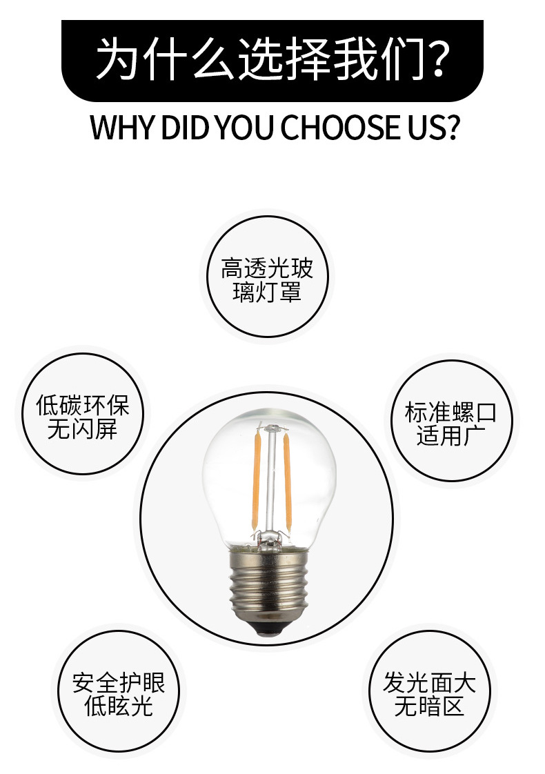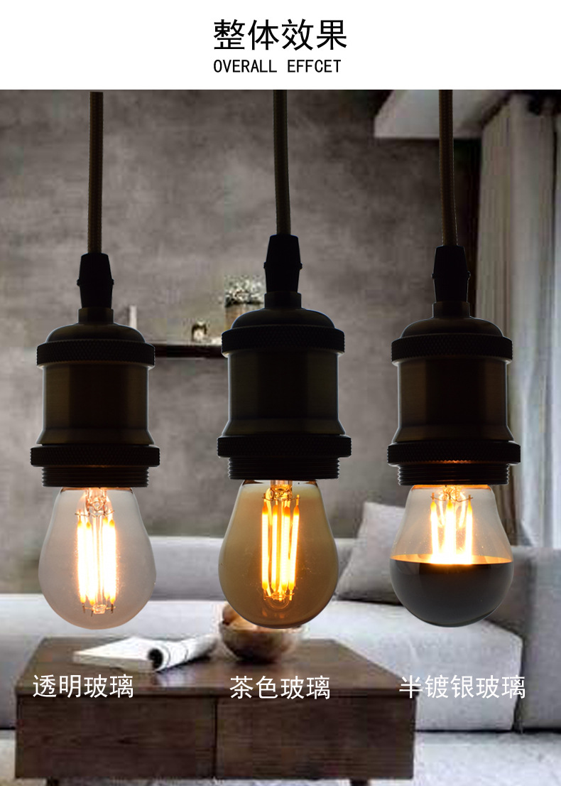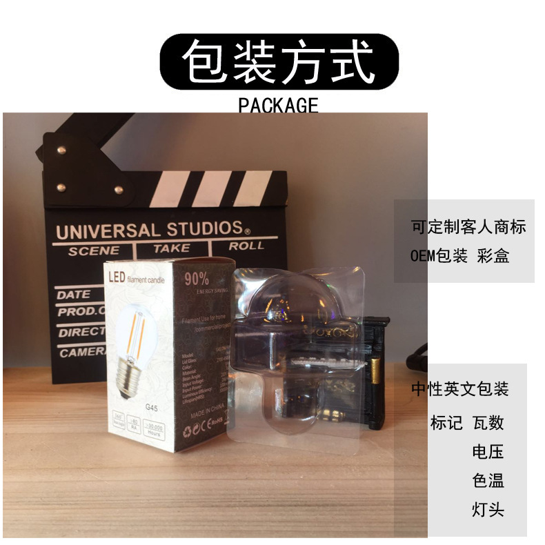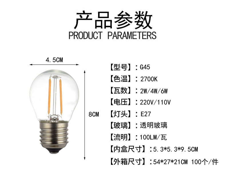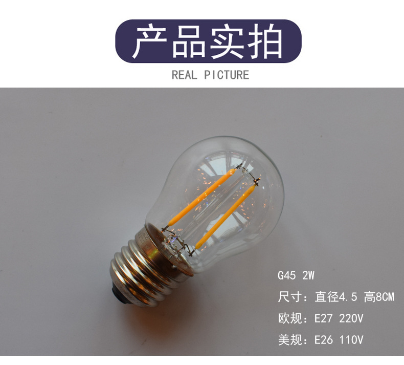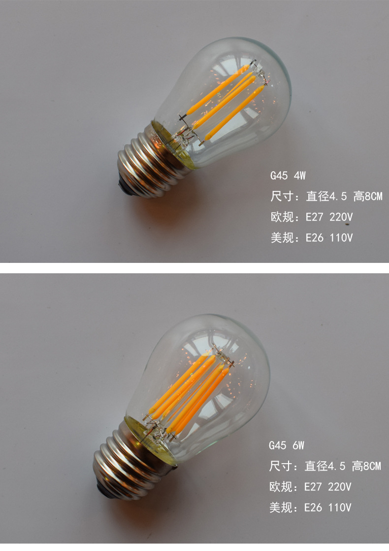Bombilla LED decoración de vidrio bombilla vintage lámpara de filamento G45 bombilla E27 fábrica directa transfronteriza Alambre de tungsteno