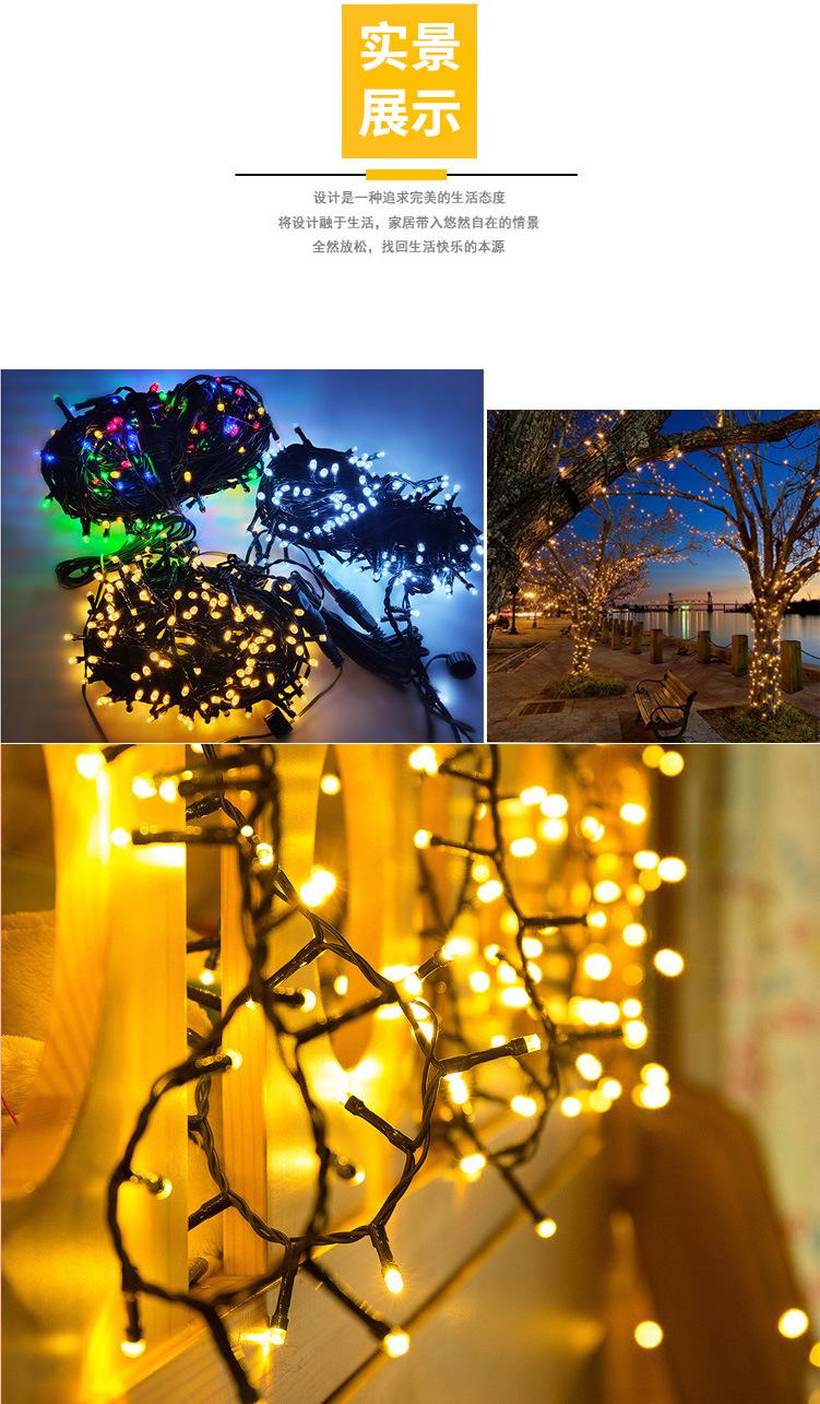 Luces de cadena LED al por mayor atmósfera de Navidad luces de color luces de alambre de cobre luces intermitentes al aire libre luces de cadena solares impermeables al aire libre
