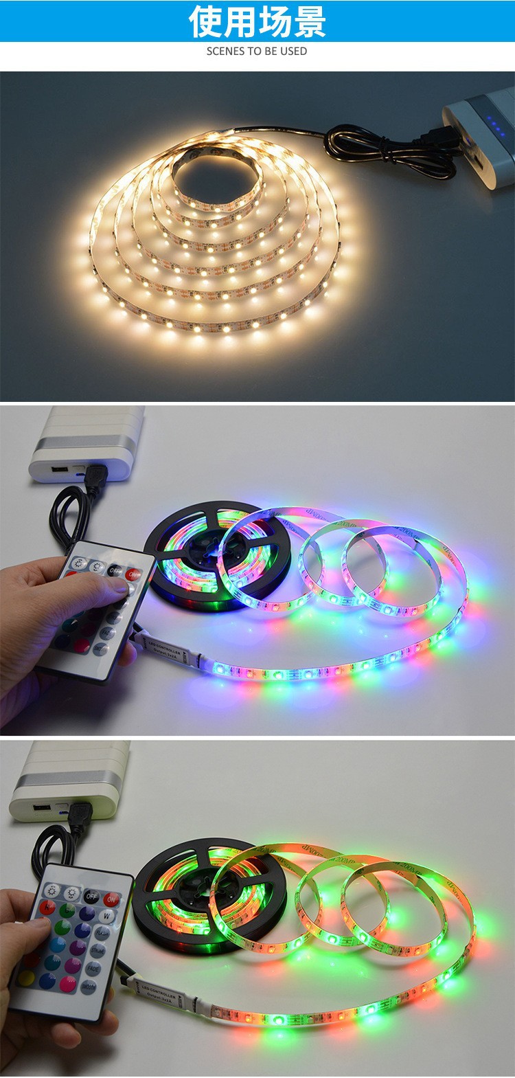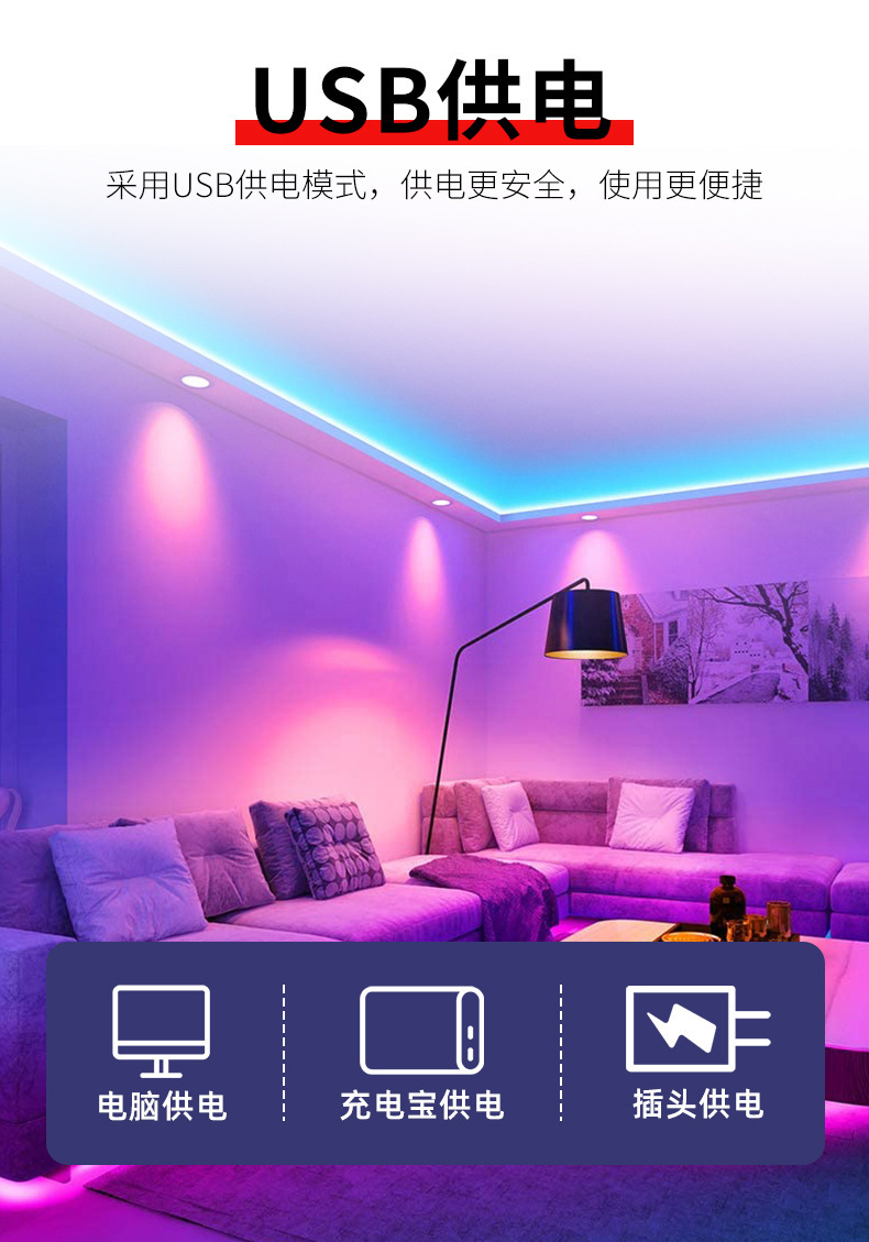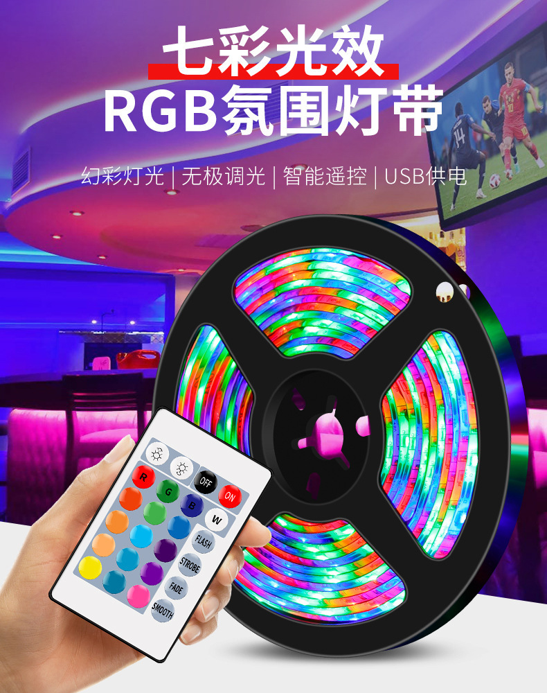 Transfronterizo dedicado 5V de bajo voltaje LED tira de luz 2835RGB tira de luz LED tira autoadhesiva USB TV de fondo atmósfera tira de luz