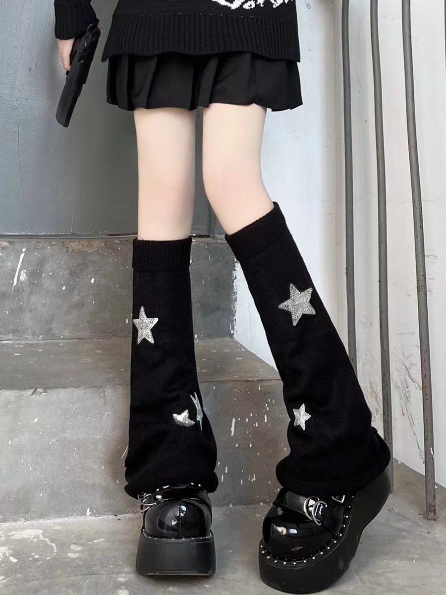 Y2g cultura asiática JK calcetines mujeres negro largo becerro calcetines de punto estrella pierna cubierta caliente chica pila calcetines marea