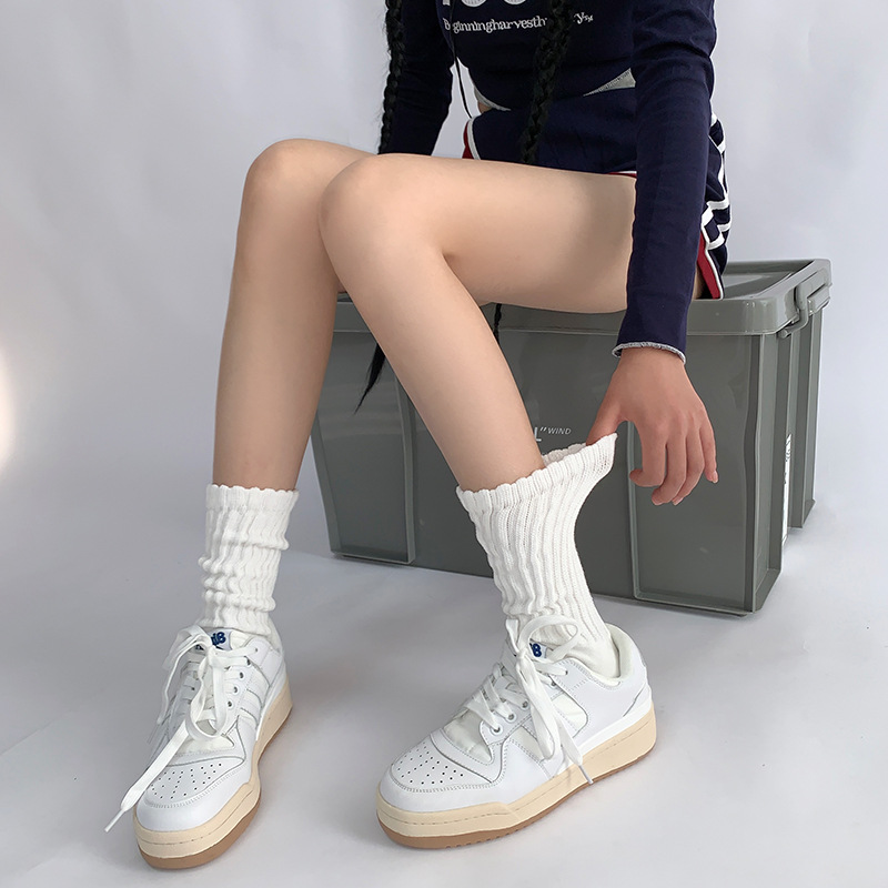 Calcetines de hilo grueso para mujer Primavera y otoño calcetines blancos de media pantorrilla para mujer Otoño e Invierno medias grises calcetines de becerro de lana de punto