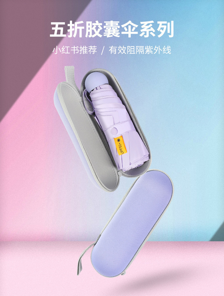 Protección solar cinco veces paraguas de ocho huesos paraguas de cápsula de bolsillo pegamento negro cinco veces paraguas de sombrilla plegable de seis huesos paraguas personalización