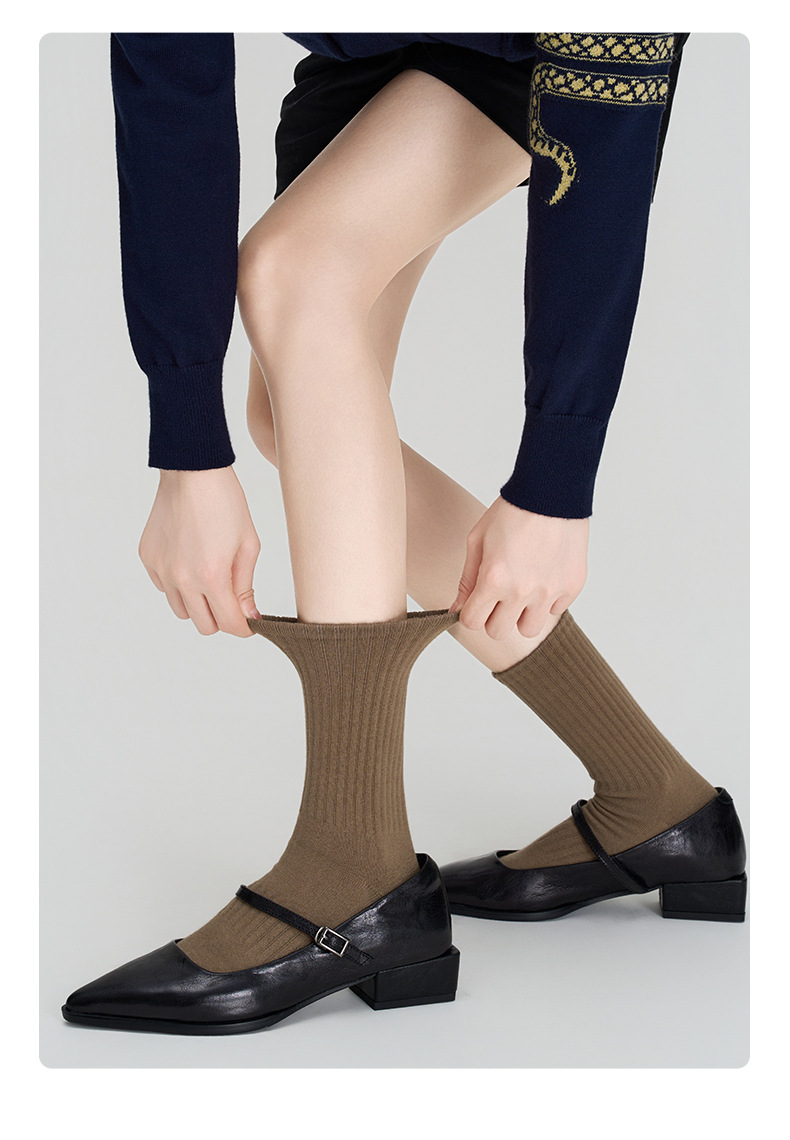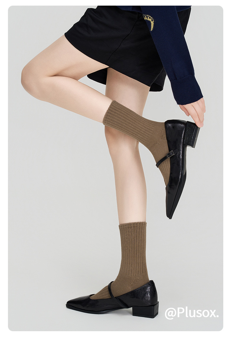 Plusox calcetines marrones calcetines de media pantorrilla de mujer Primavera, Otoño e Invierno calcetines japoneses retro hilo grueso pila ins moda