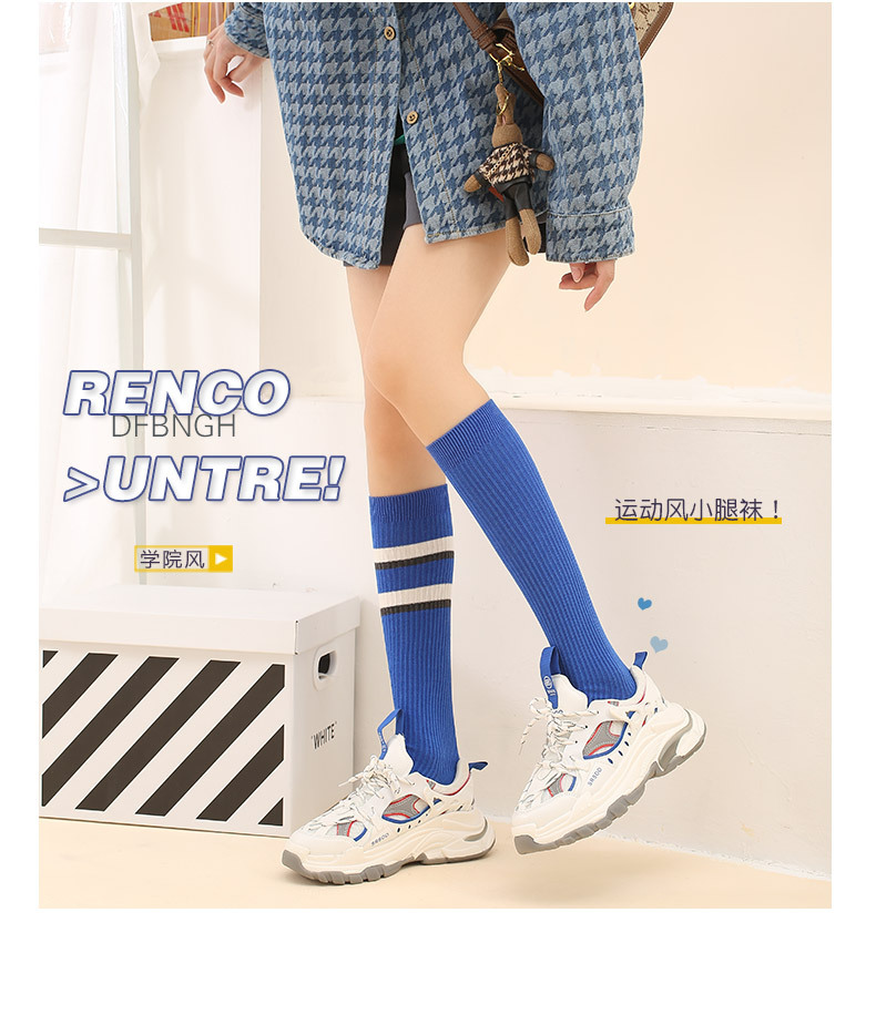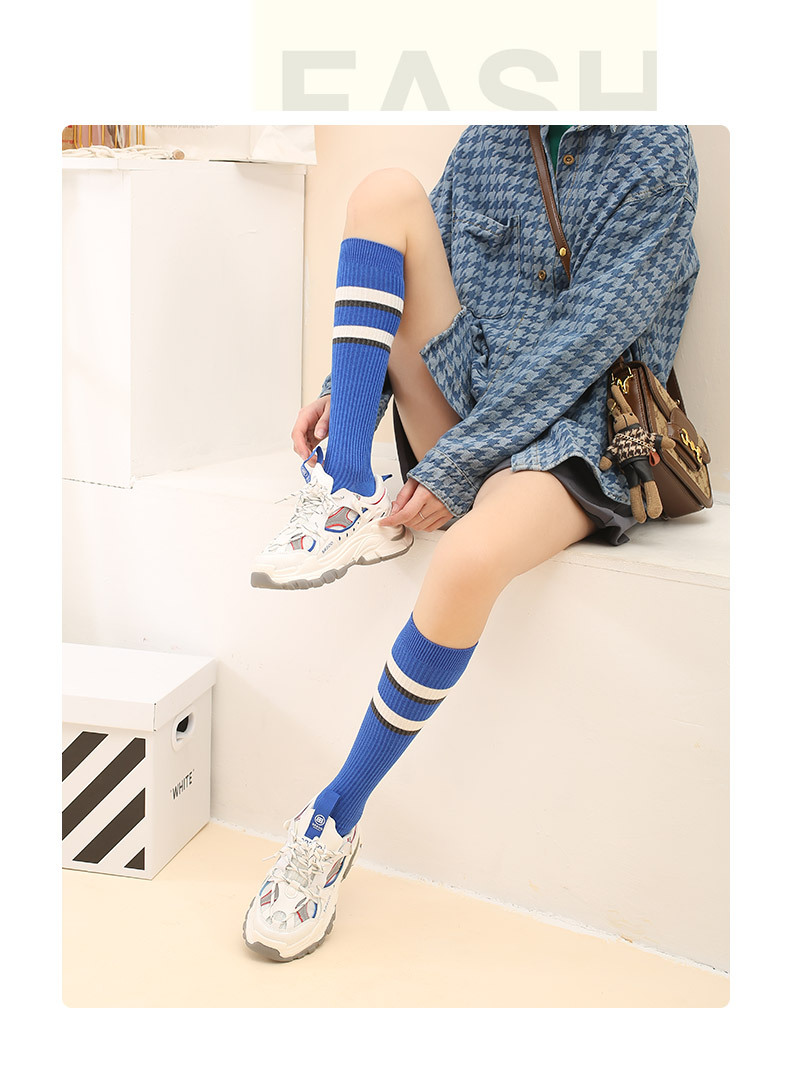 Calcetines de becerro de las mujeres ins medias de rayas de dos barras de moda primavera y otoño estilo universitario japonés JK calcetines altos de rodilla