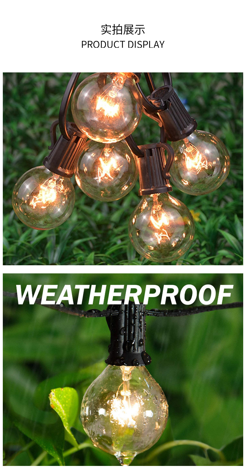 Cadena de lámpara de filamento de tungsteno G40. Tenedor de la lámpara E12. Al Aire Libre impermeable iluminación Cadena de vidrio tungsteno filamento patio decorativo lámpara cadena