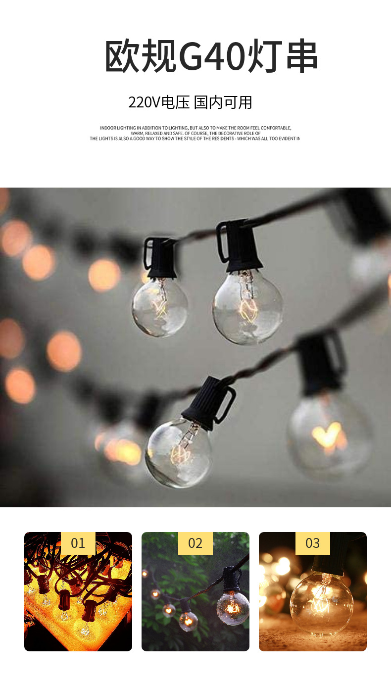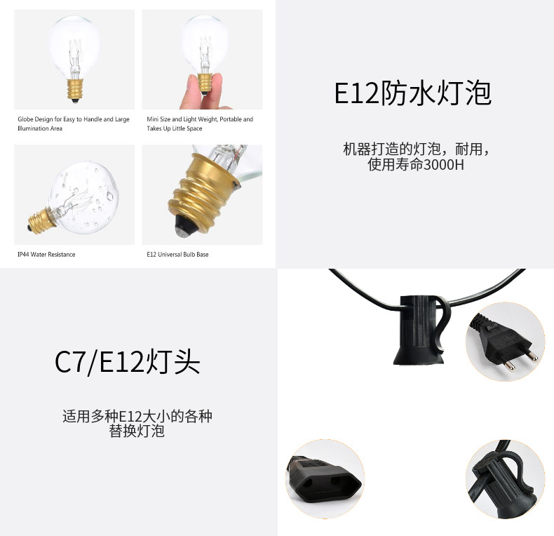 | mecha G40 | Cadena de luces decorativas navideñas para exteriores E12 |