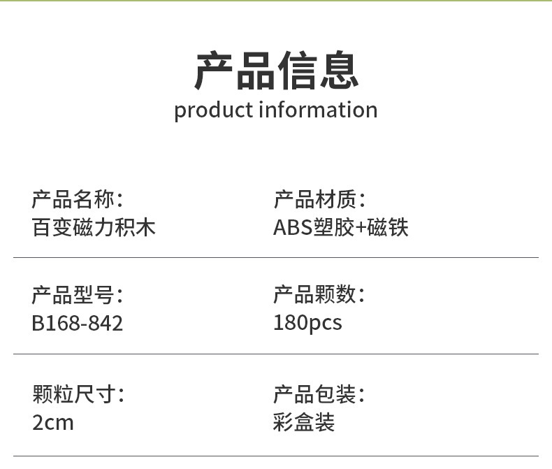 | Color | 80 piezas, nuevo tema Mary, 452G,Set Magnético Militar de 132 Piezas, 127 Piezas Sin Luces + 5 Luces, 531G,138 piezas de bloques magnéticos con temática de hielo y nieve, 135 piezas sin luces + 3 piezas con luces, 547g.,137PC Tema Halloween 134 piezas sin luces + 3 piezas con luces 544G,Juego de bloques de construcción magnéticos con temática de ingeniería de 138 piezas, 136 piezas sin luces + 2 piezas con luces, 544 gramos,Juego de bloques de construcción magnéticos con temática de granja de 138 piezas, 135 piezas sin luces + 3 piezas con luces, 547 gramos,Juego de bloques de construcción magnéticos con temática de Marie de 137 piezas, 134 piezas sin luces + 3 piezas con luces, 548 gramos,188PC Bloques de construcción magnéticos temáticos de elfos 175 piezas sin luces + 13 piezas con luces 812g,Bloques de construcción magnéticos con temática de espada, 166 piezas: 157 piezas sin luces + 9 piezas con luces. Peso: 812g.,Juego de bloques de construcción magnéticos con temática de portal de 180 piezas, 165 piezas sin luces + 15 piezas con luces, 700 g,188 piezas de bloques magnéticos con temática de flor de cerezo, 178 piezas sin luces + 10 piezas con luces, 700g.,Juego de bloques de construcción magnéticos con temática de granja de 188 piezas, 183 piezas sin luces + 5 piezas con luces, 700 g,Juego de bloques de construcción magnéticos con temática de casa de 100 piezas, 96 piezas sin luces + 4 piezas con luces, 439 gramos |