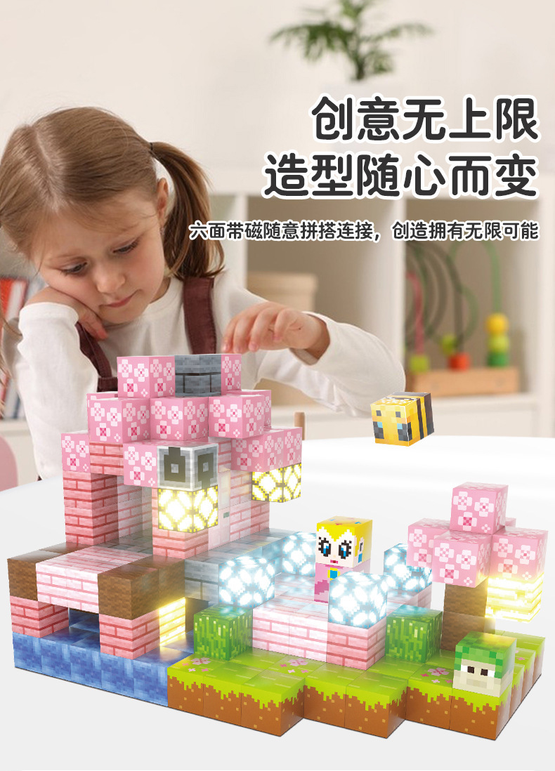 Suministro de fábrica de un nuevo juego de bloques magnéticos de iluminación, juego de cubos magnéticos de ensamblaje educativo para niños.