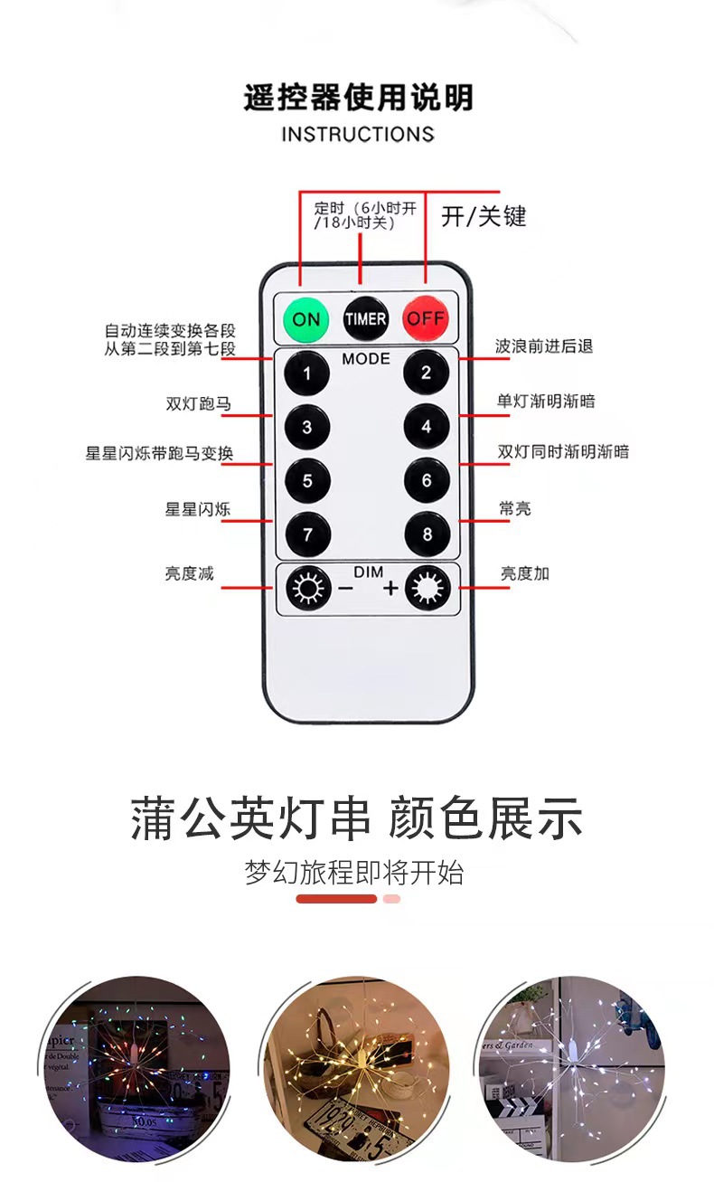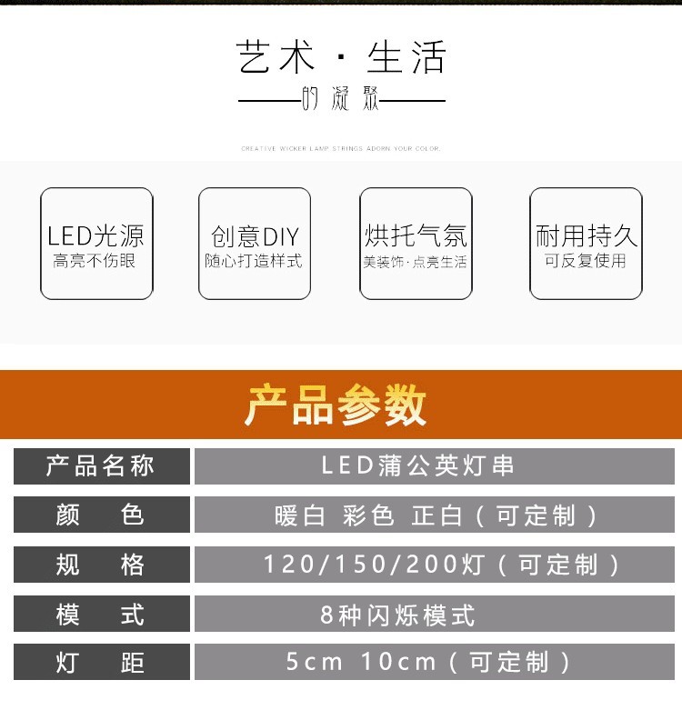 2 luces 99 piezas 198 luces diente de león cabeza tres flores dispersas