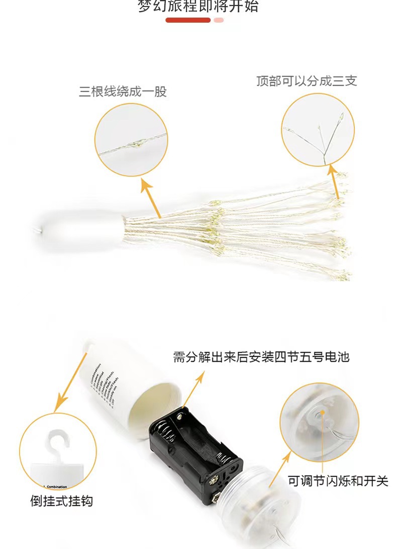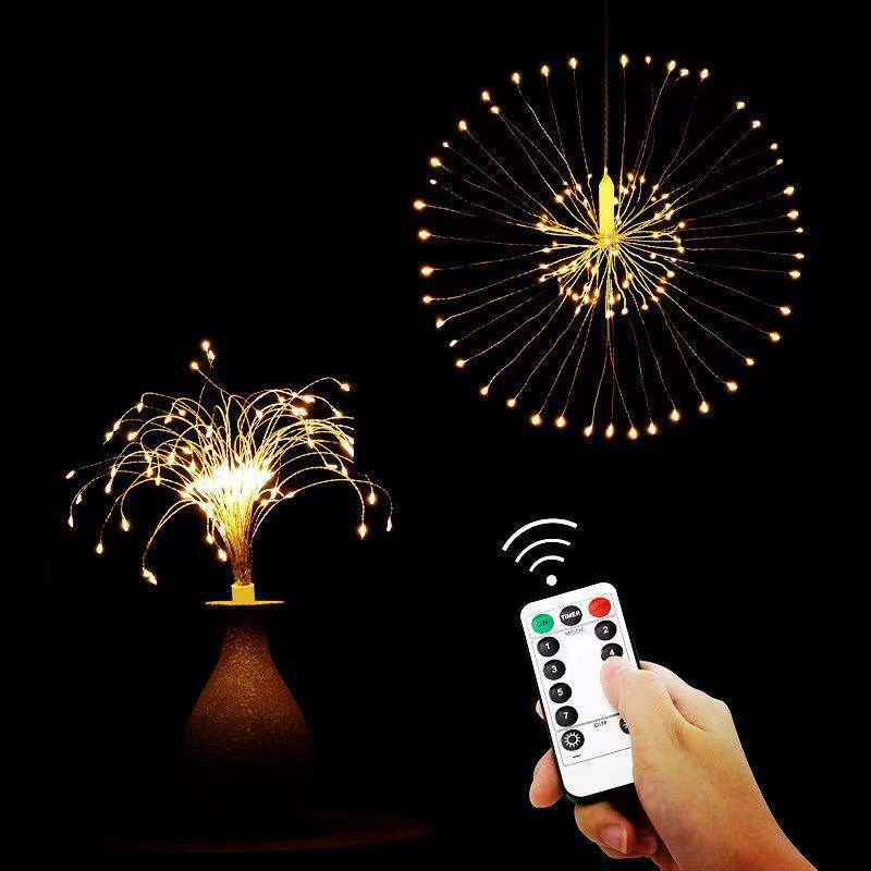 Lámpara de humo de Shenzhen 8 función caja de la batería control remoto LED alambre de cobre Cadena de luz lámpara de humo estrellado tipo coral