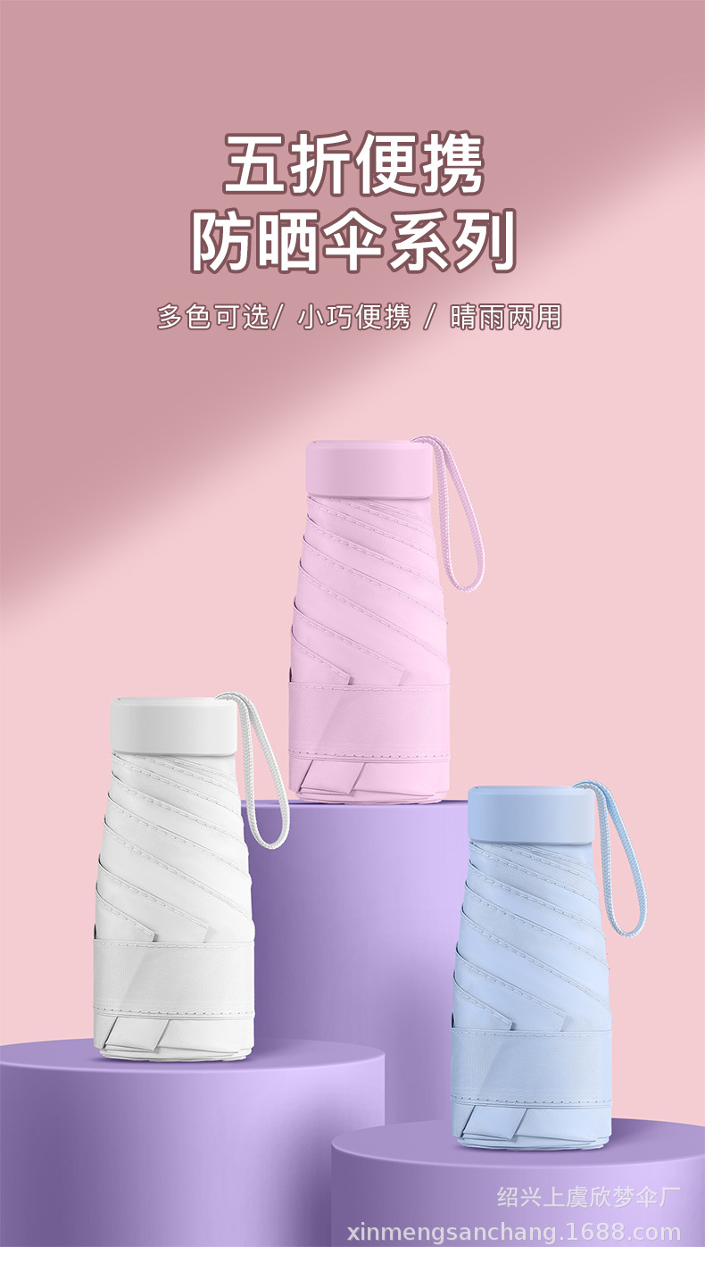 Mini plana de seis pliegues de color a juego mango de vinilo paraguas de sol de las mujeres pequeño bolso portátil paraguas de sol impreso LOGO
