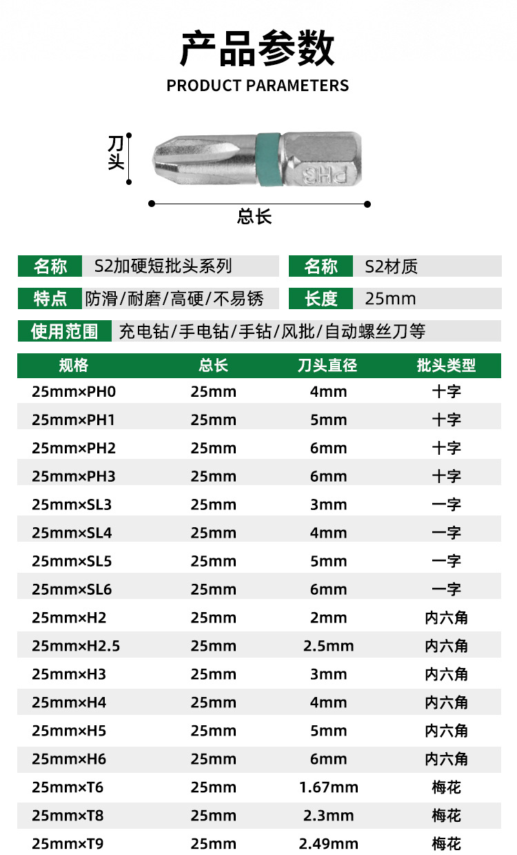 Transfronterizo dedicado para Langrun S2 destornillador eléctrico de acero traje de taladro eléctrico 25mm fuerte magnético super alta dureza destornillador eléctrico cabeza