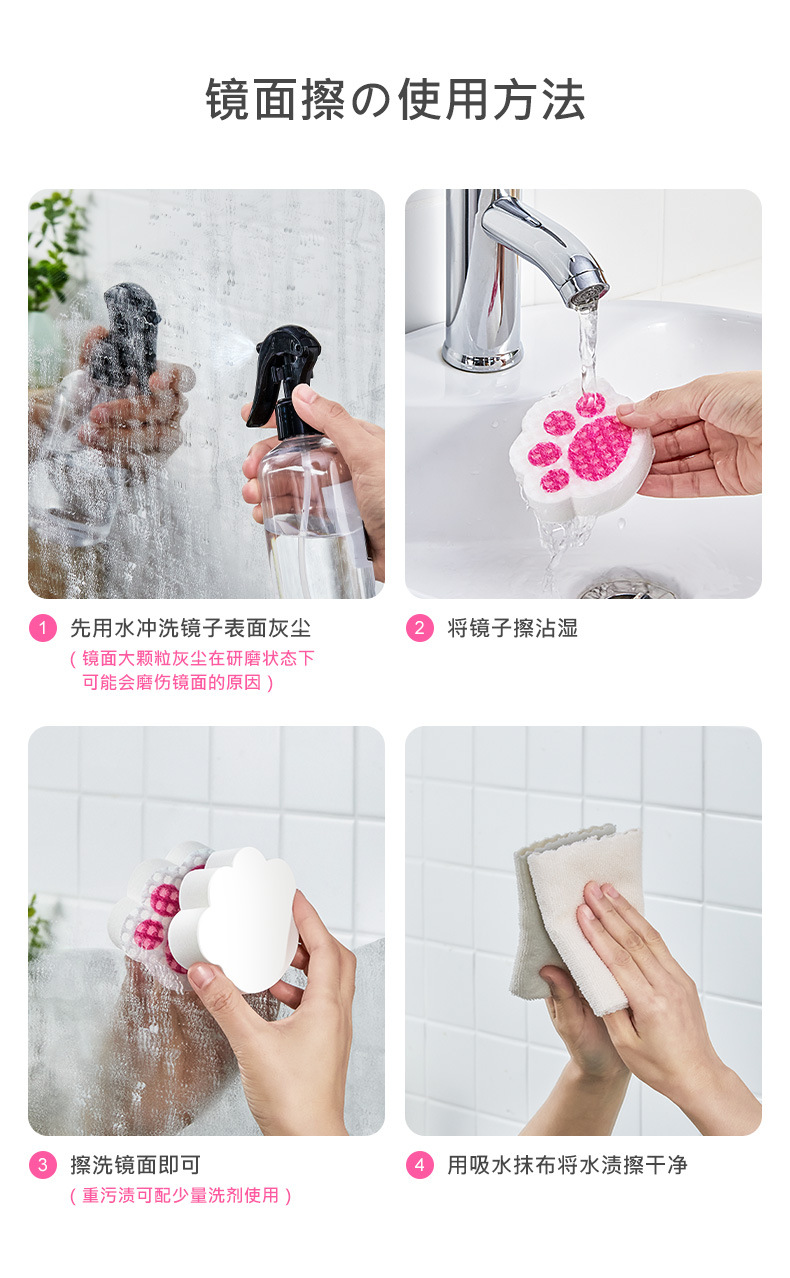 Espejo de limpieza baño espejo de vidrio descontaminación marca de agua quitar grifo descalcificación garra de gato limpieza de esponja limpieza sin dejar marcas limpias