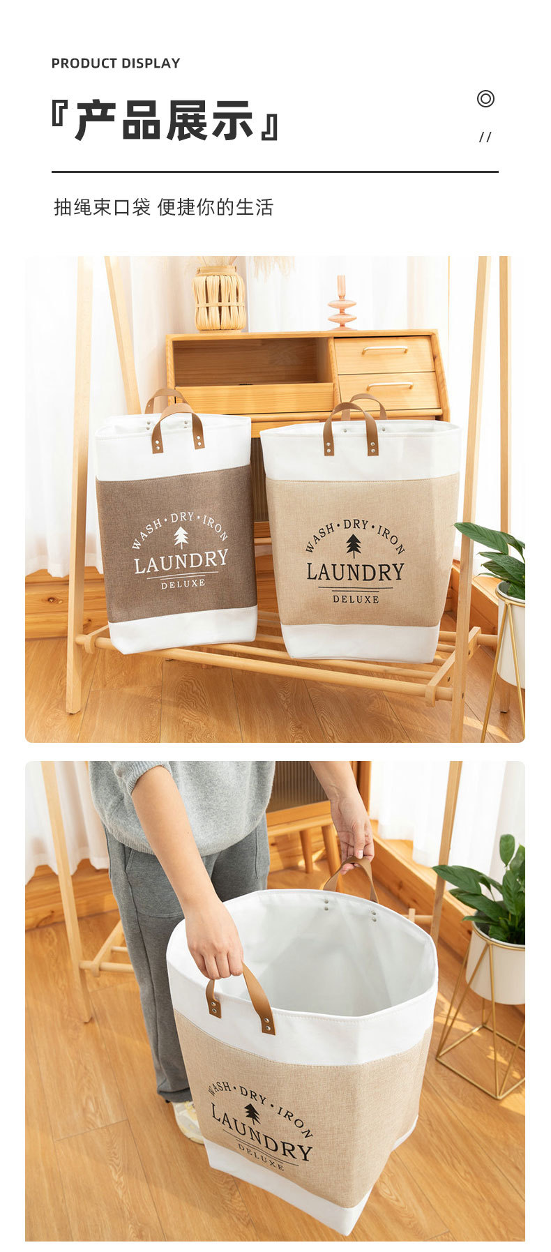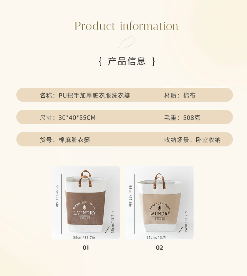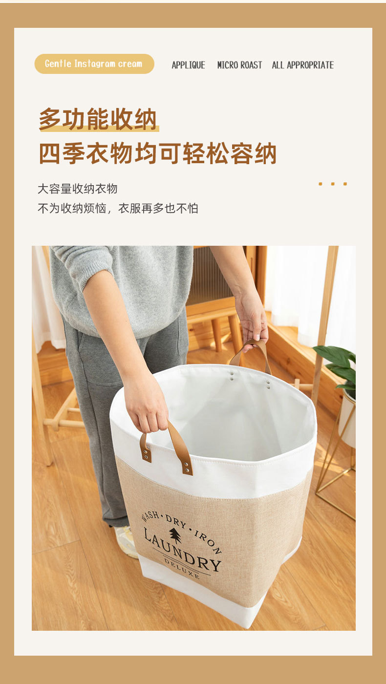 Bolsa de lavandería con asa de PU caja de almacenamiento engrosada misceláneas de juguete marco de organización ropa de algodón grande ropa sucia cesta de lavandería transfronteriza