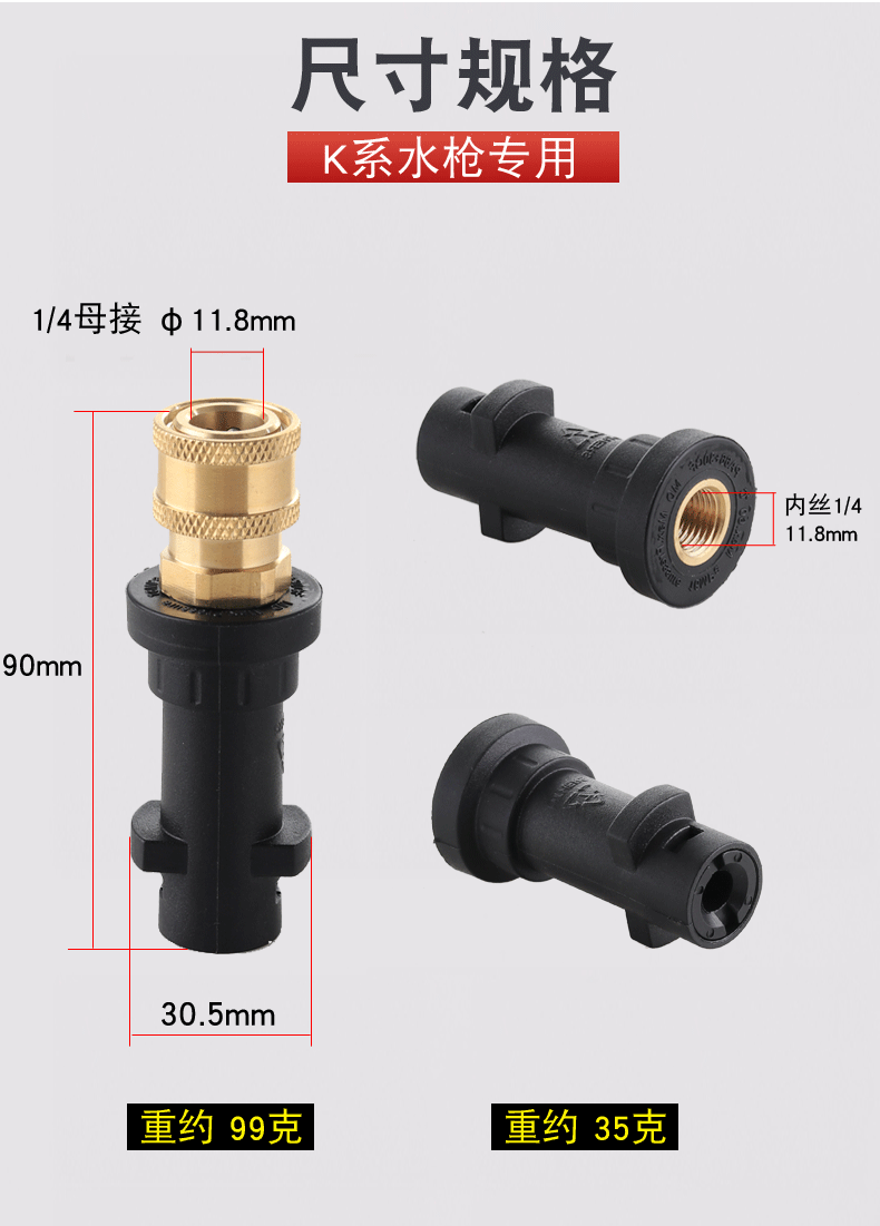 En stock Kahe Kichi K2-k7 lavadora de coches pistola de agua de espuma olla conector de conversión 1/4 conexión rápida de alta presión boquilla de cinco colores