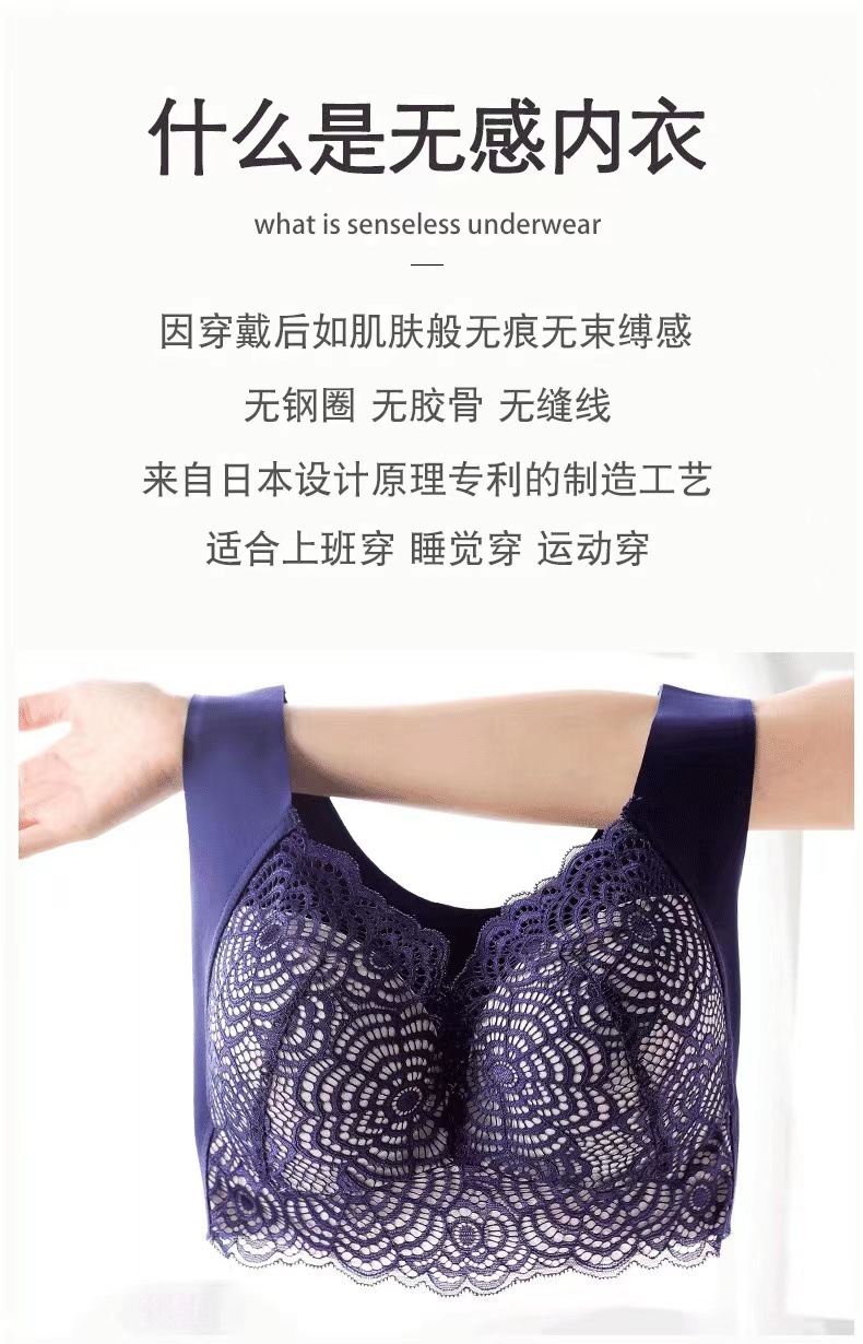 Más tamaño inalámbrico Comercio exterior ropa interior sexy encaje deportes dormir chaleco sujetador Chubby chica delgada push up bra