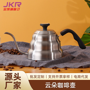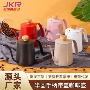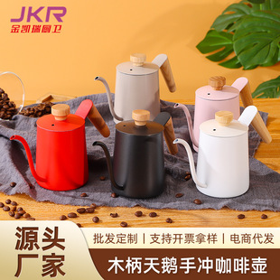Hogar de acero inoxidable café mano olla estilo occidental boca delgada boca larga mango de madera con tapa tetera de leche colgando tetera de goteo del oído