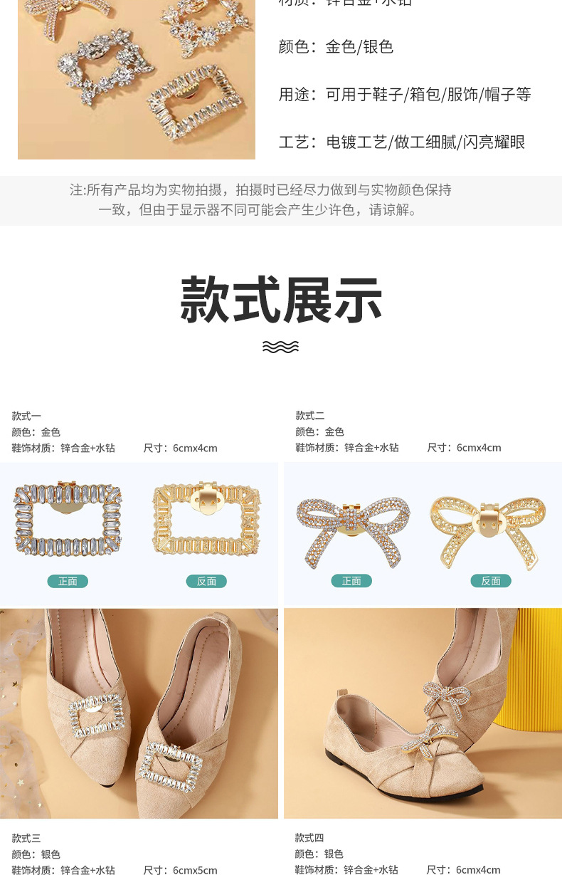 | Colores | DZ1 (mariposa de plata desmontable),DZ2 (mariposa dorada desmontable),DZ3 (diamante plateado desmontable),DZ4 (diamante dorado desmontable) |