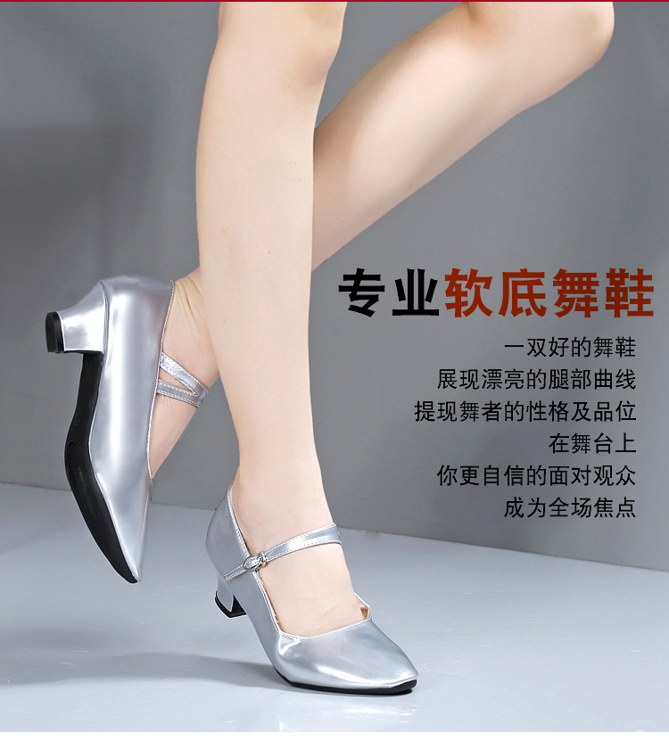 Zapatos de baile latino zapatos de baile de plata para mujer zapatos de baile cuadrados zapatos de baile modernos de Xinjiang zapatos de baile de salón étnicos de fondo suave