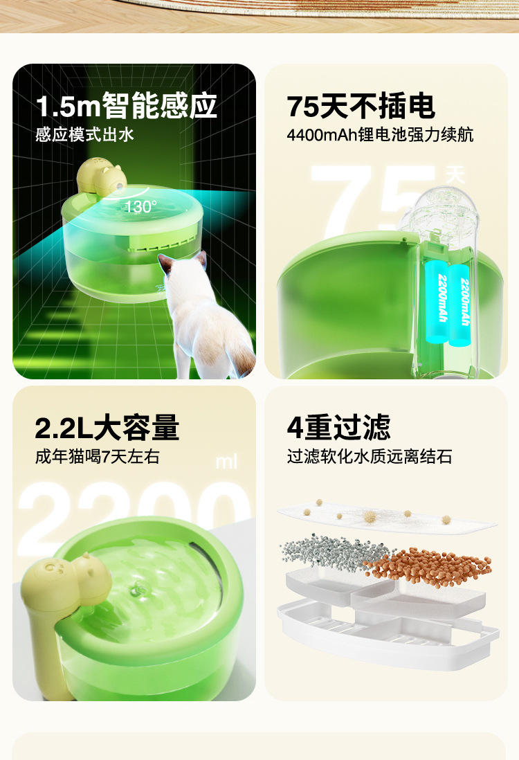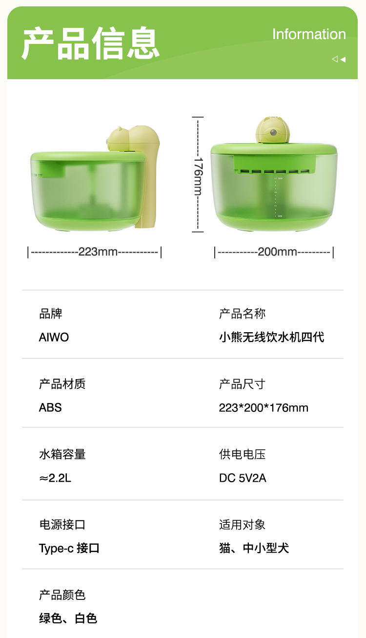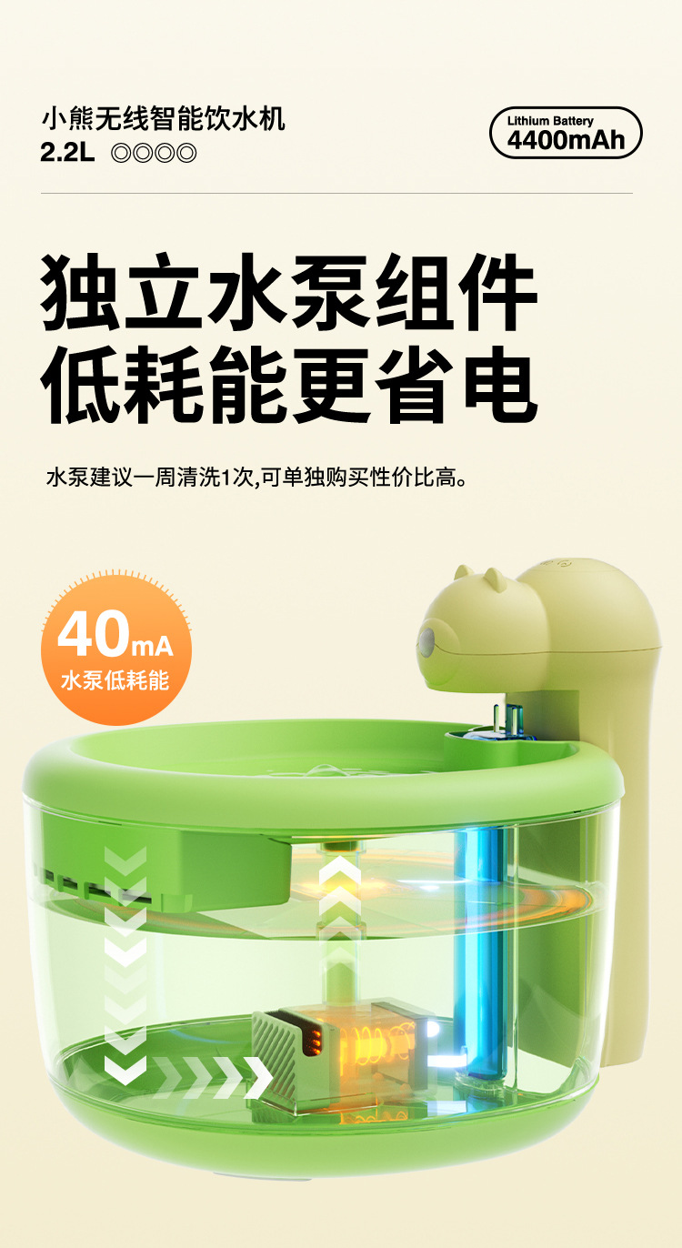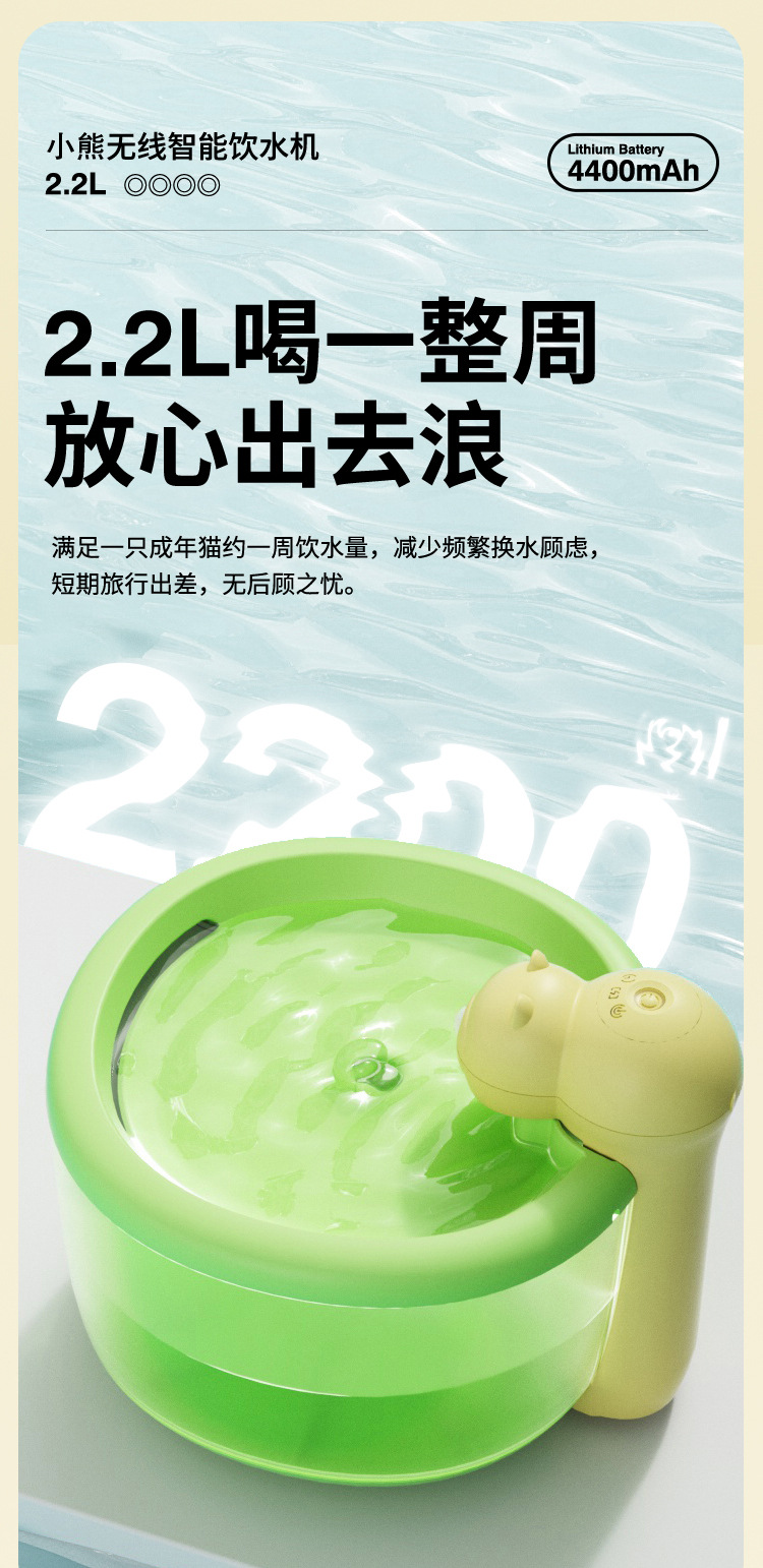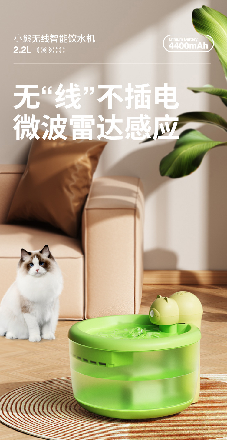 Dispensador de agua para mascotas oso dispensador de agua para gatos alimentador de agua inteligente de agua vivo automático inalámbrico no enchufable perro agua potable