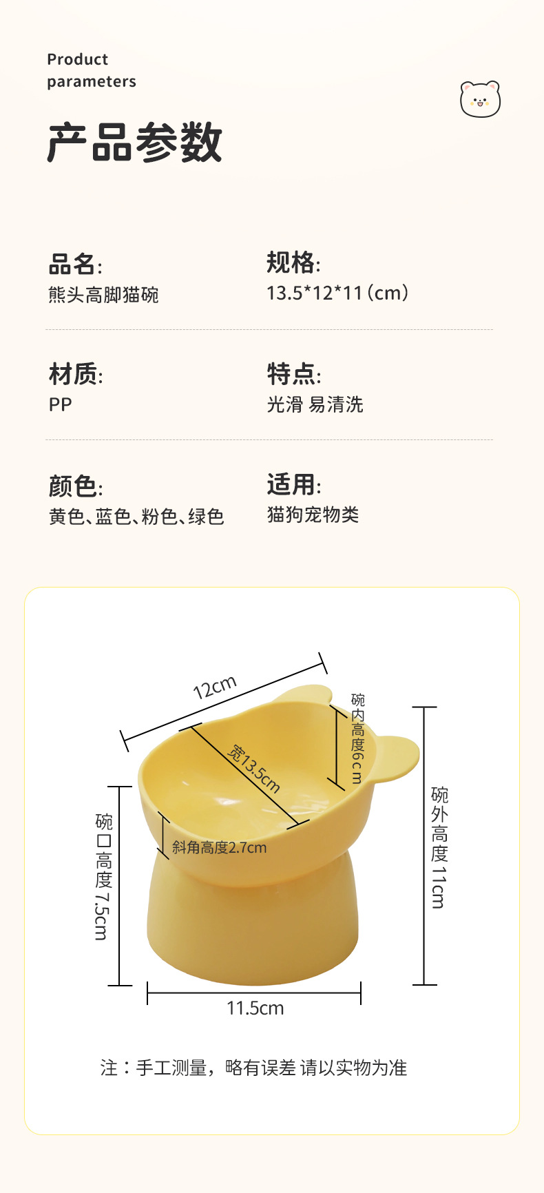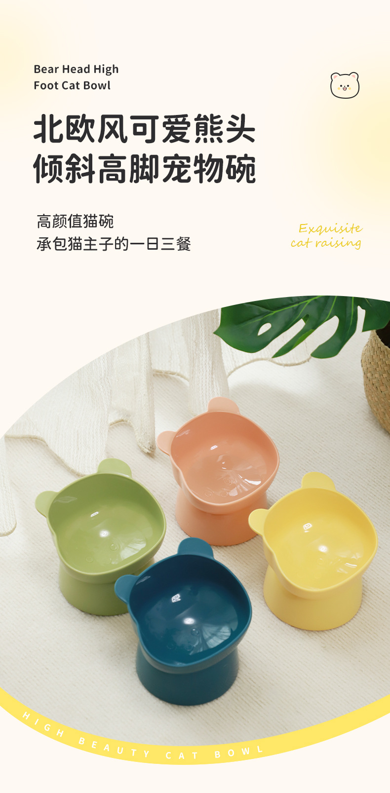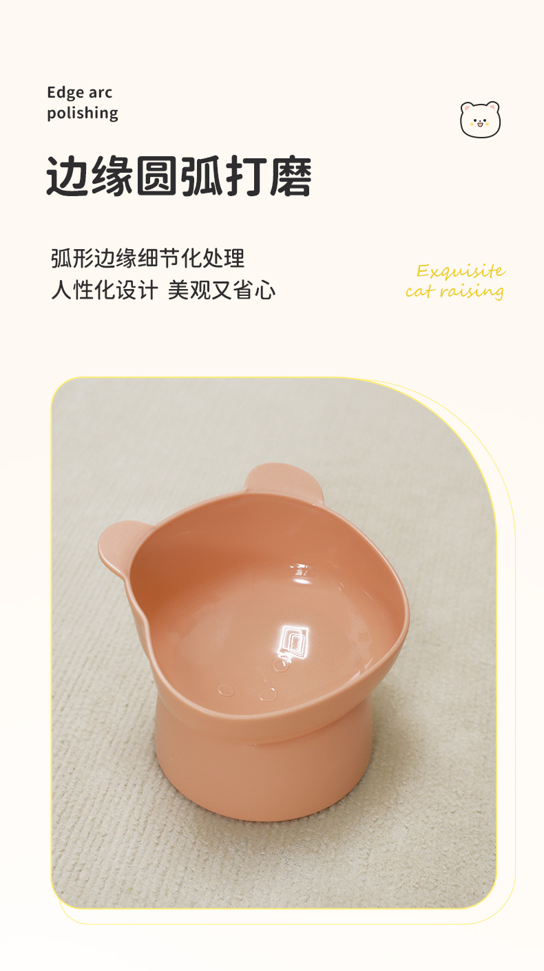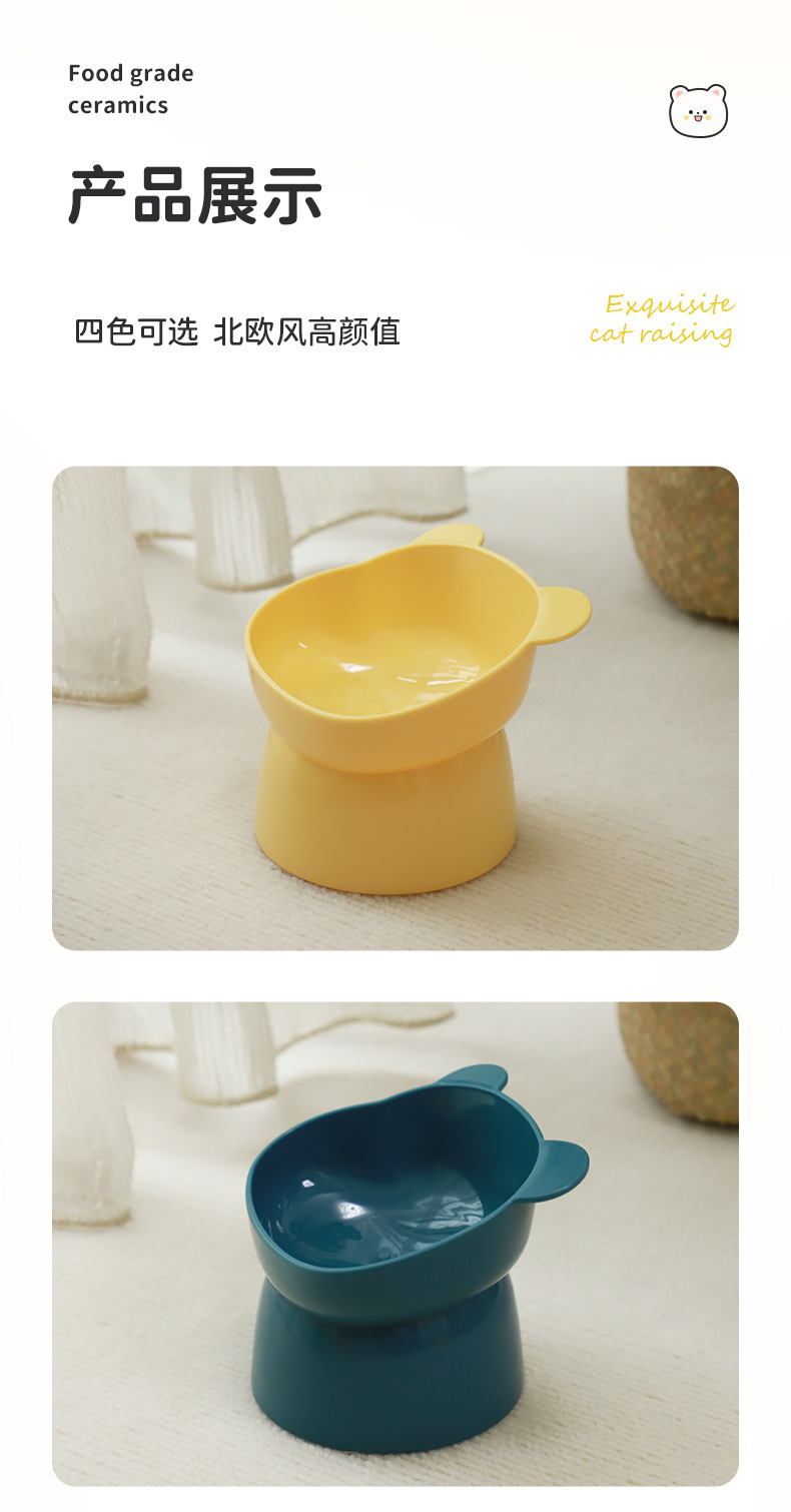 Oso de dibujos animados de patas altas gato tazón para mascotas oblicua boca cuello protección gato comida tazón alimentación agua potable gato tazón al por mayor