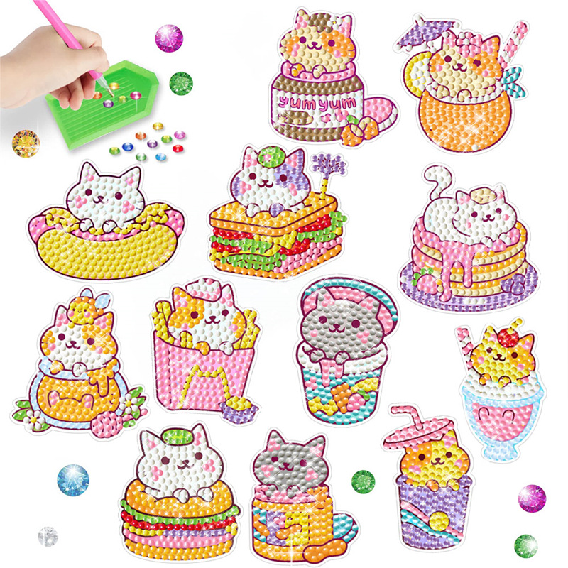 Pintura de Diamantes para Niños, Pegatinas de Diamantes Hechas a Mano, Pegatinas de Dibujos Animados, Pegatinas de Gato y Hamburguesa, Mosaico de Cristal, Venta al por Mayor