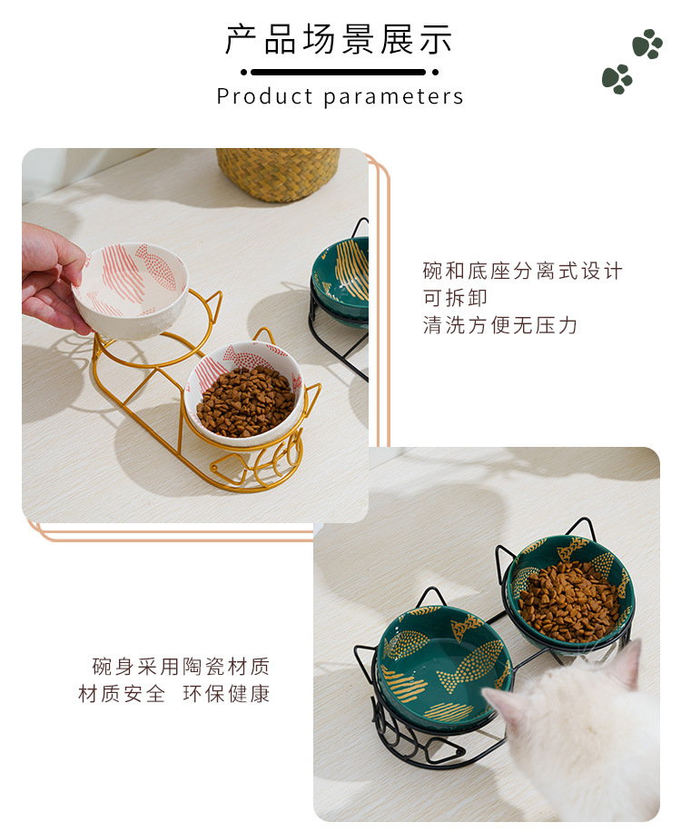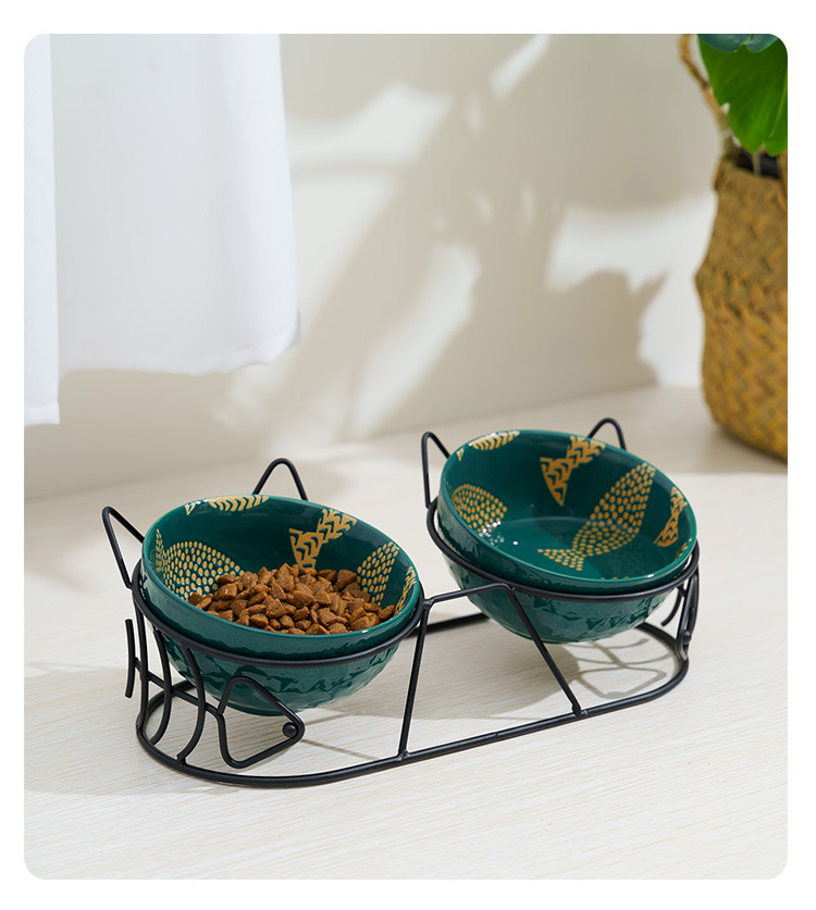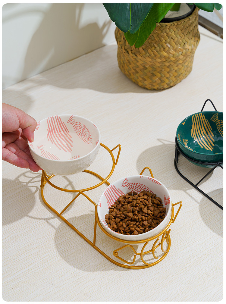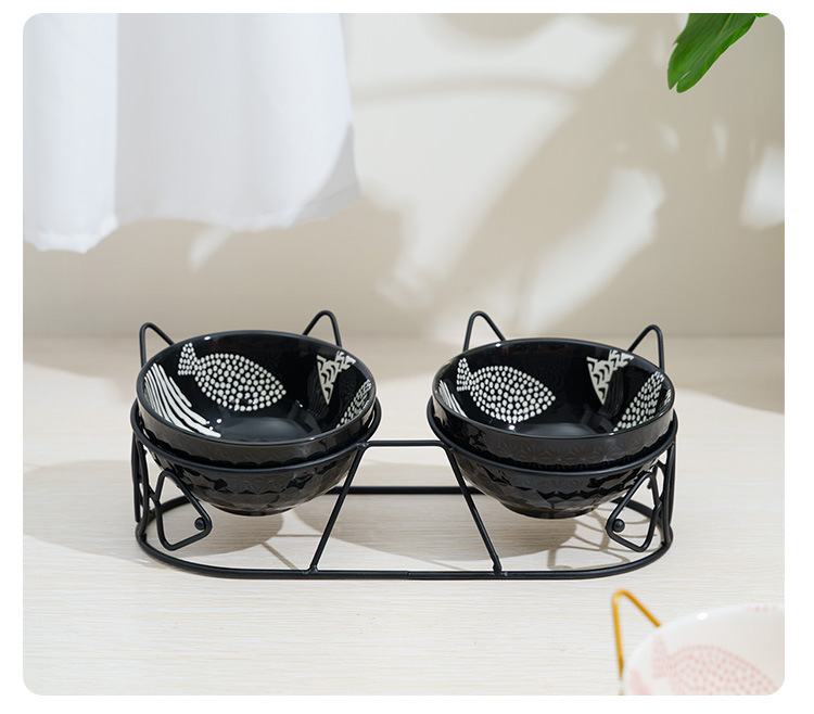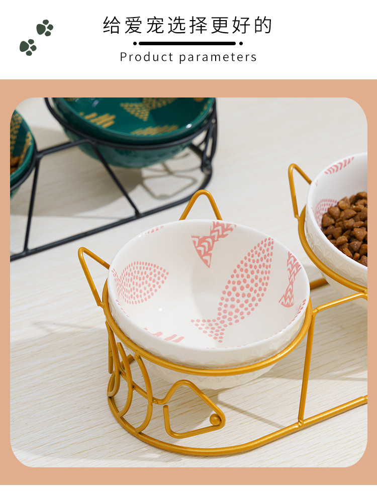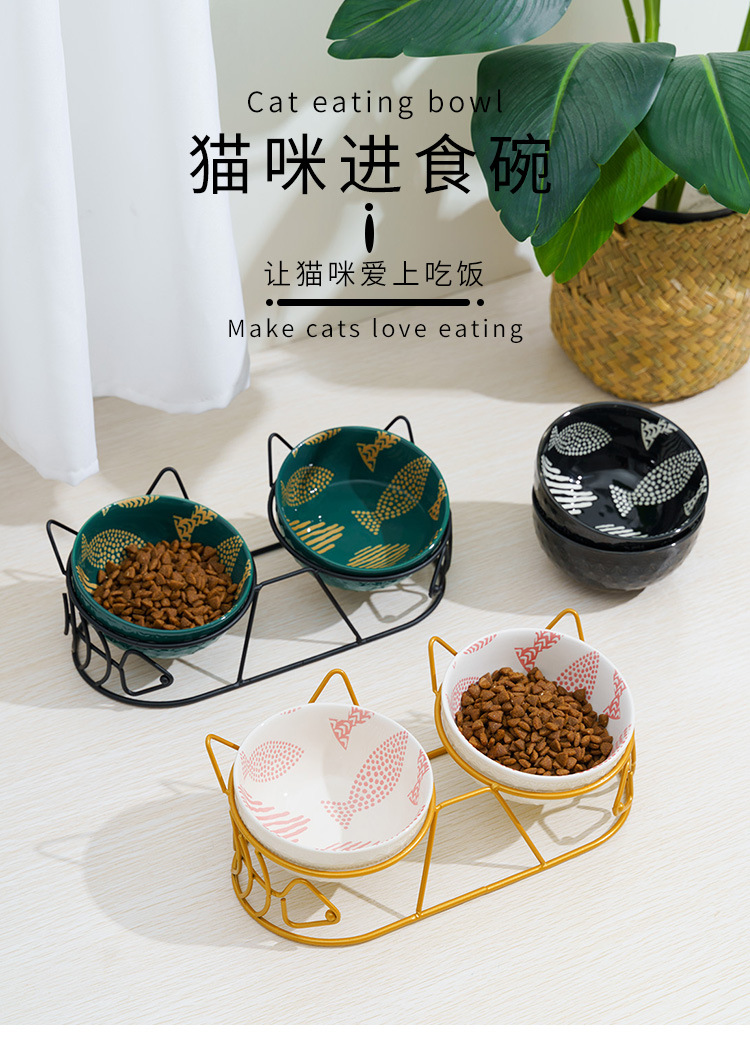 Pet gato tazón de cerámica doble tazón de protección columna cervical fijo inclinación antidetonante gato perro tazón de comida tazón de arroz tazón de comida para gatos tazón de agua