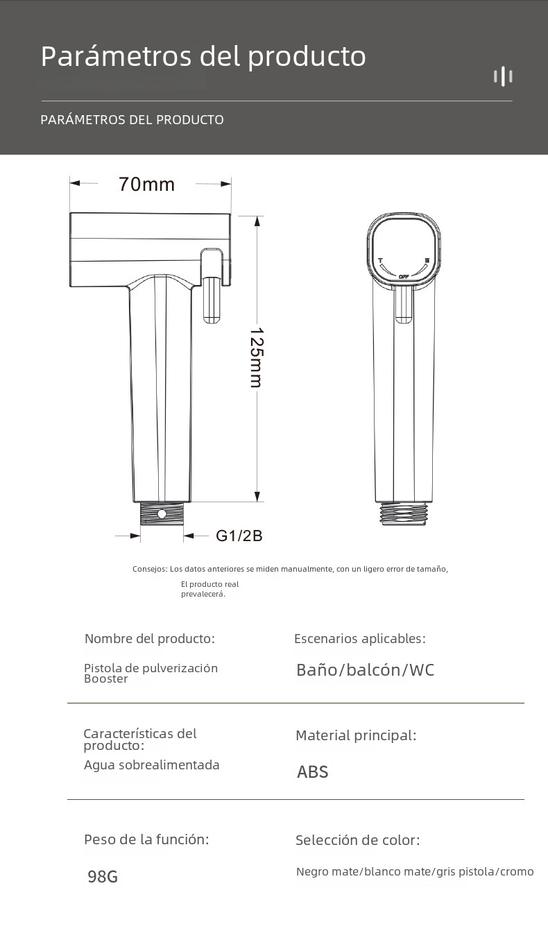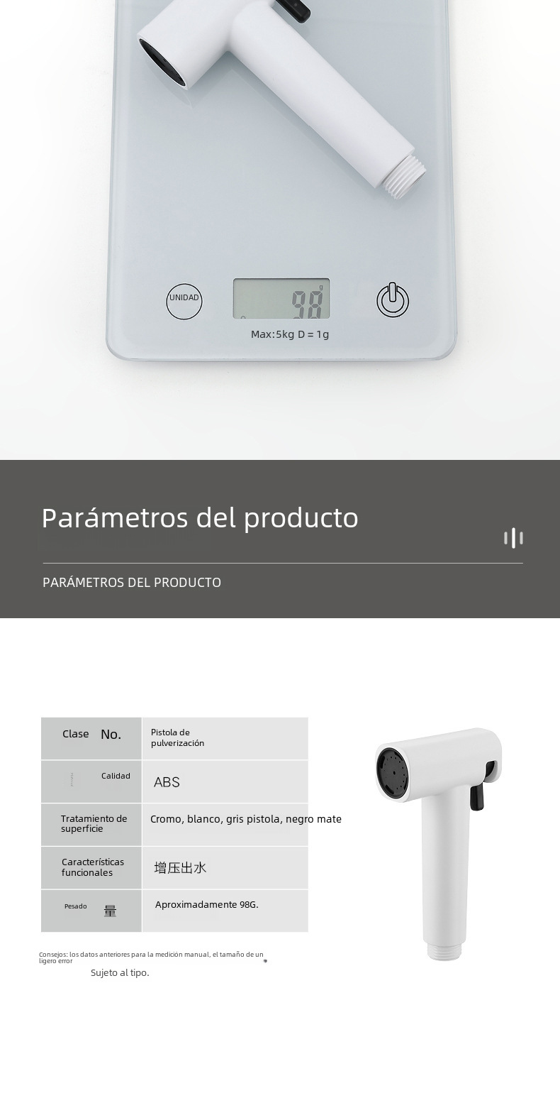 | Especificaciones | Paquete negro mate,Paquete de color de galvanoplastia,Pistola de pulverización de color cromo,Pistola de pulverización negro mate,Pistola de pulverización blanca mate,Pistola de pulverización gris,Pistola de pulverización de oro cepillado,Pistola de dibujo de alambre Shuidou PISTOLA DE PULVERIZACIÓN gris |