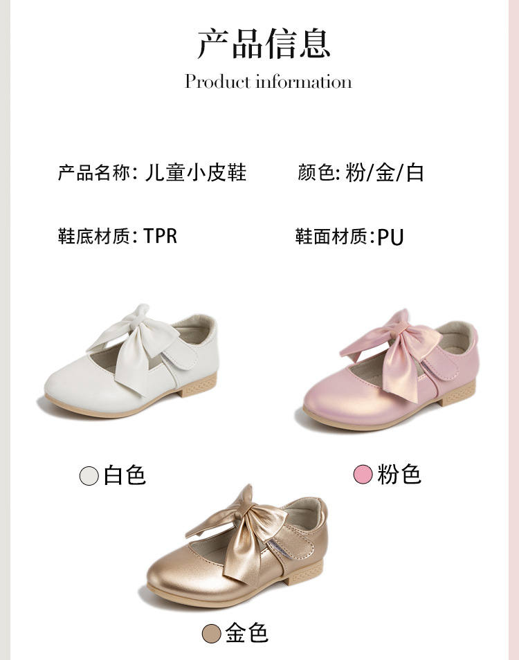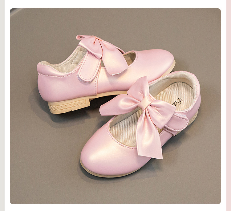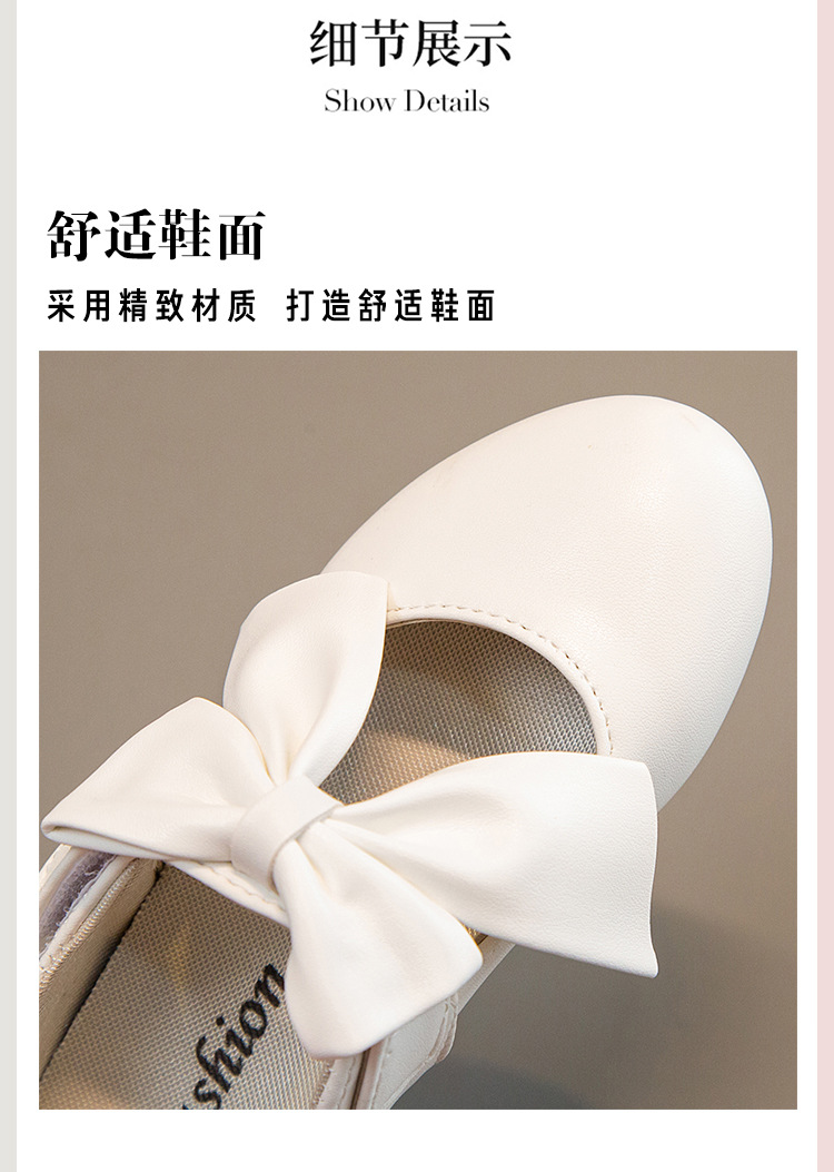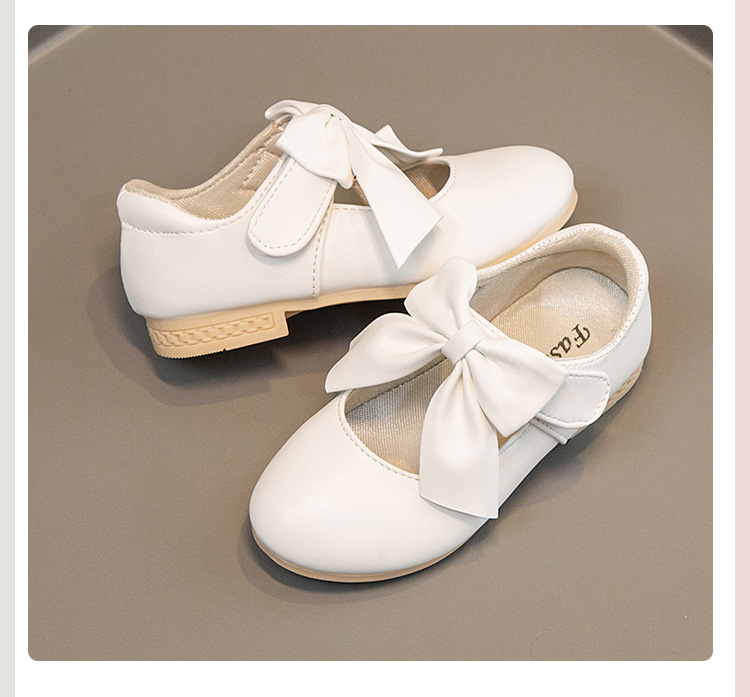 Zapatos de Niños de comercio exterior 2024 zapatos de cuero de las niñas de primavera y otoño Zapatos blancos arco medio niños pequeños y grandes zapatos de tacón alto de la princesa
