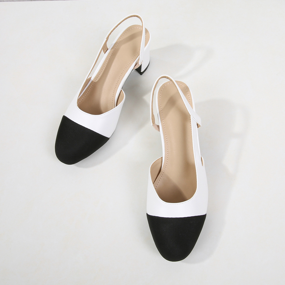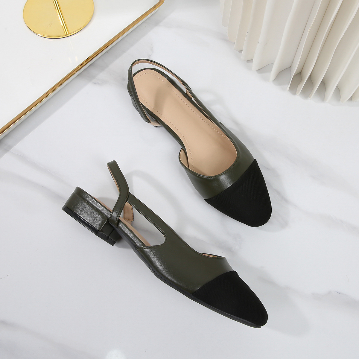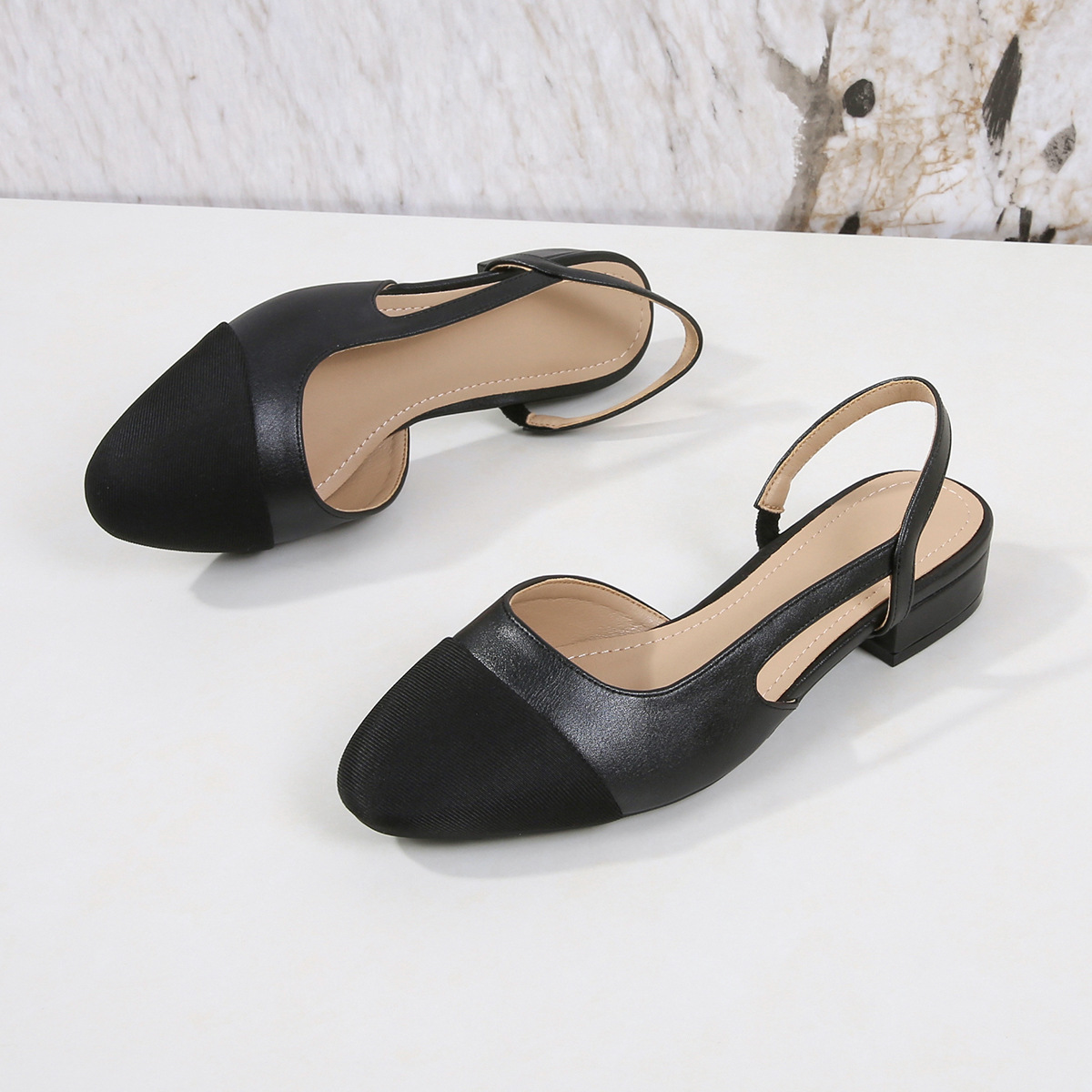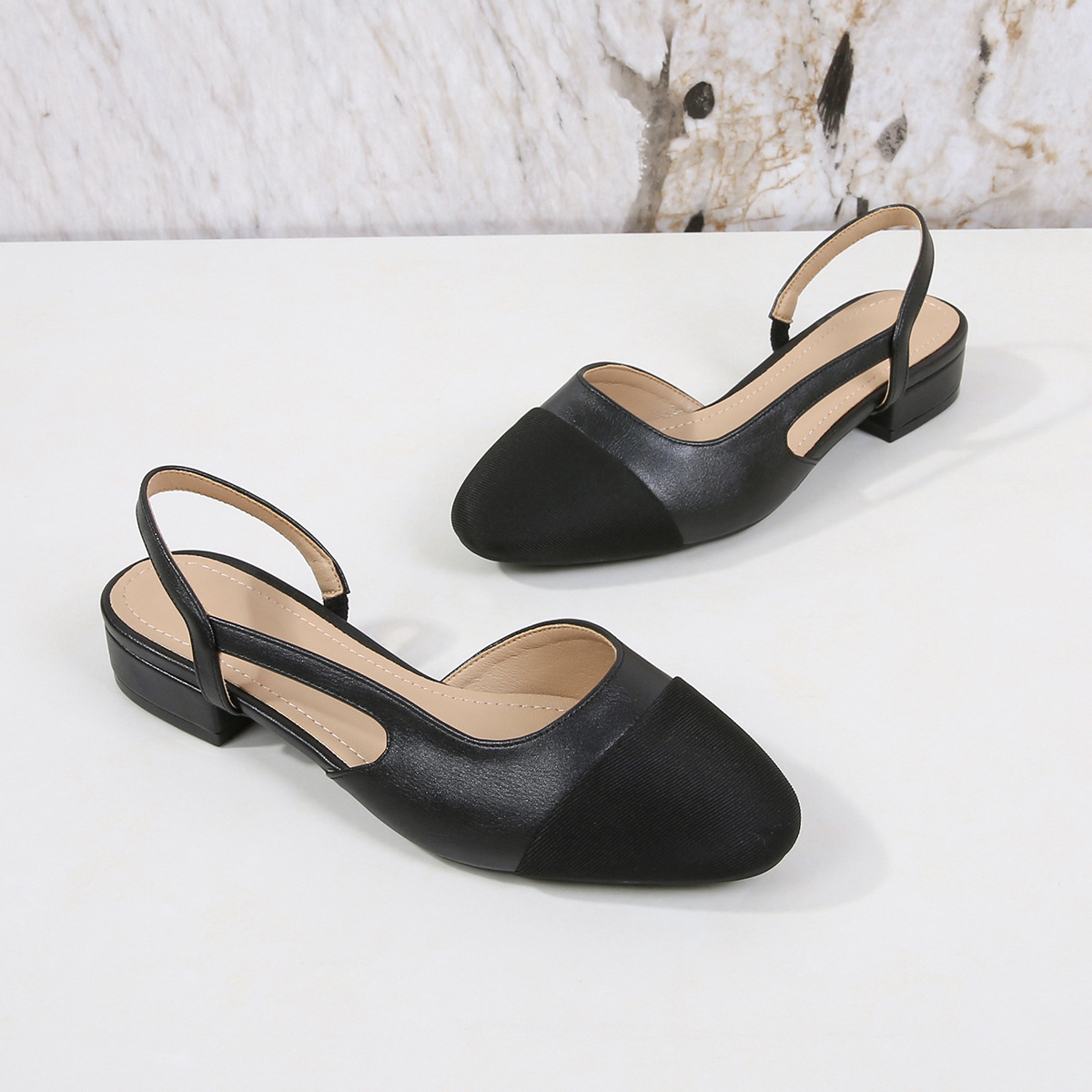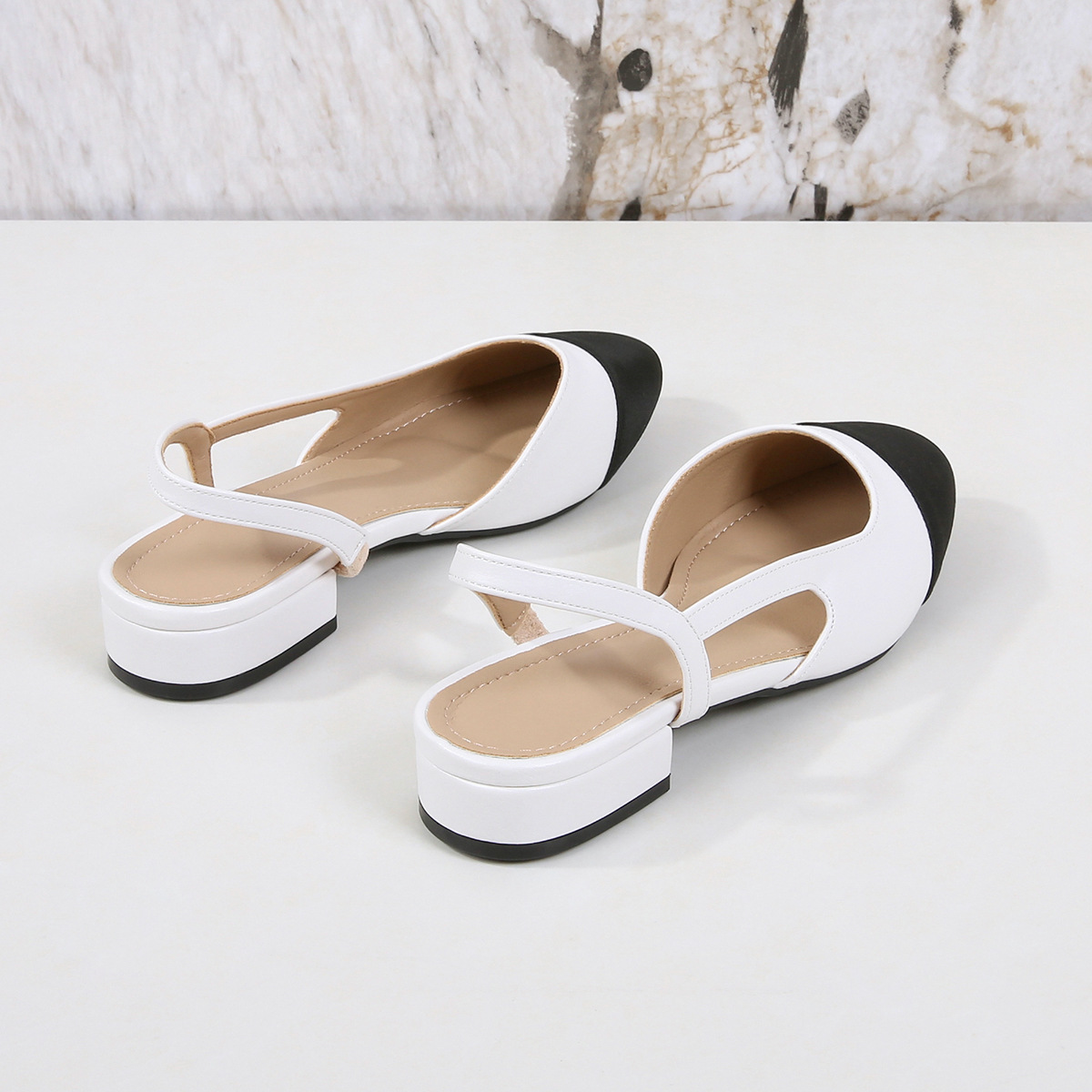 El Comercio exterior transfronterizo más el tamaño de las mujeres de los zapatos de tacón bajo de nuevo vacío cerrado toe sandalias de las mujeres planas de tacón alto del bloque del color del talón zapatos de una sola capa Mediados de zapatos de tacón