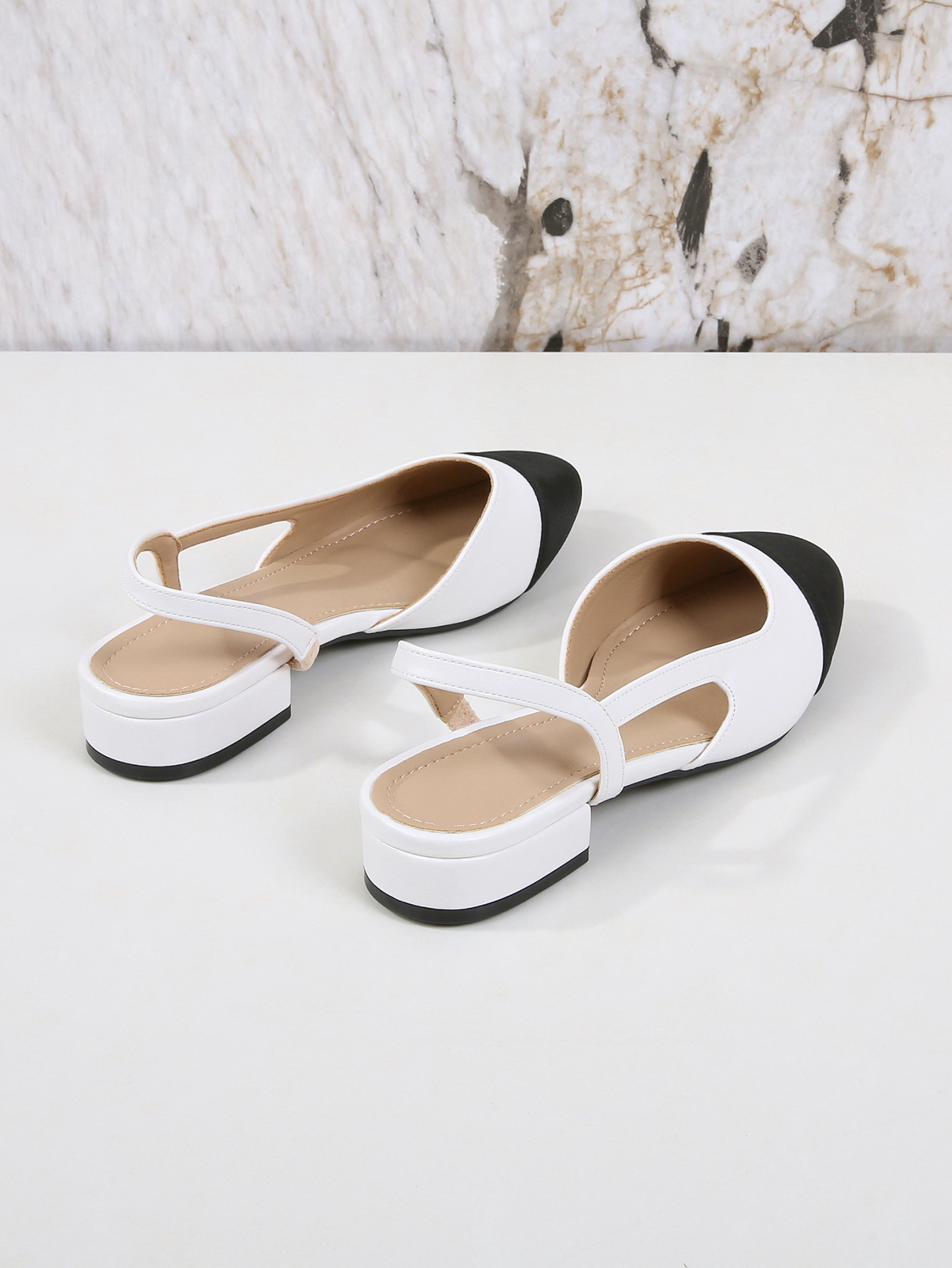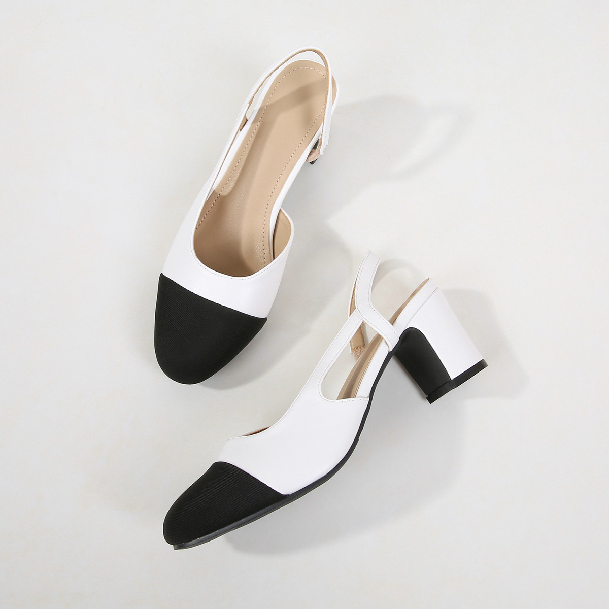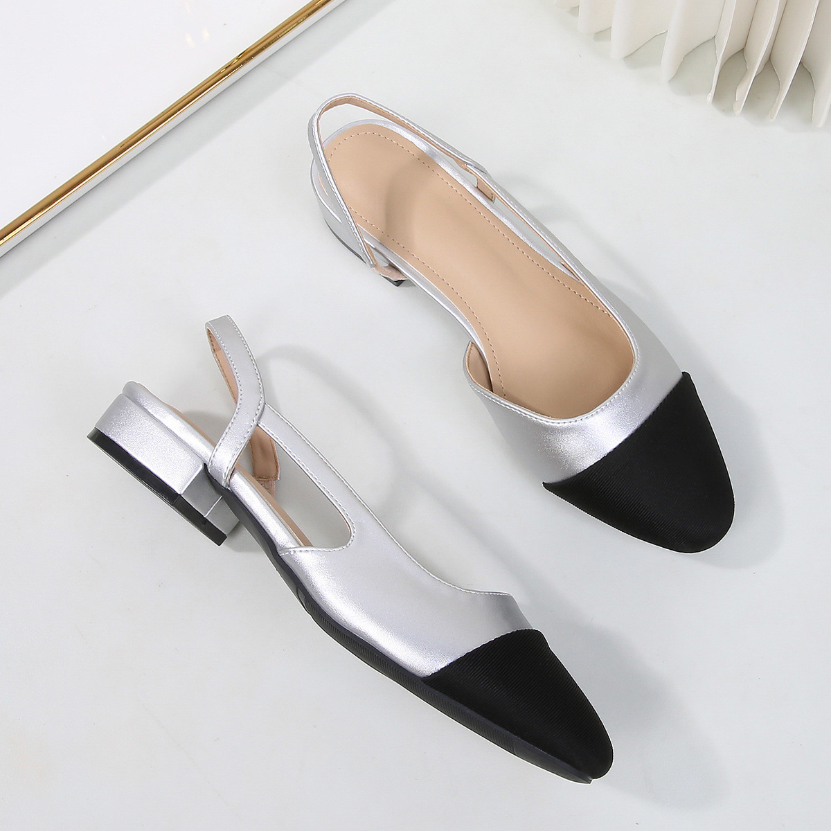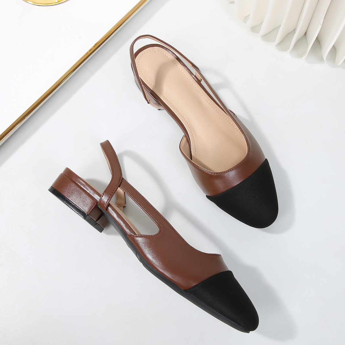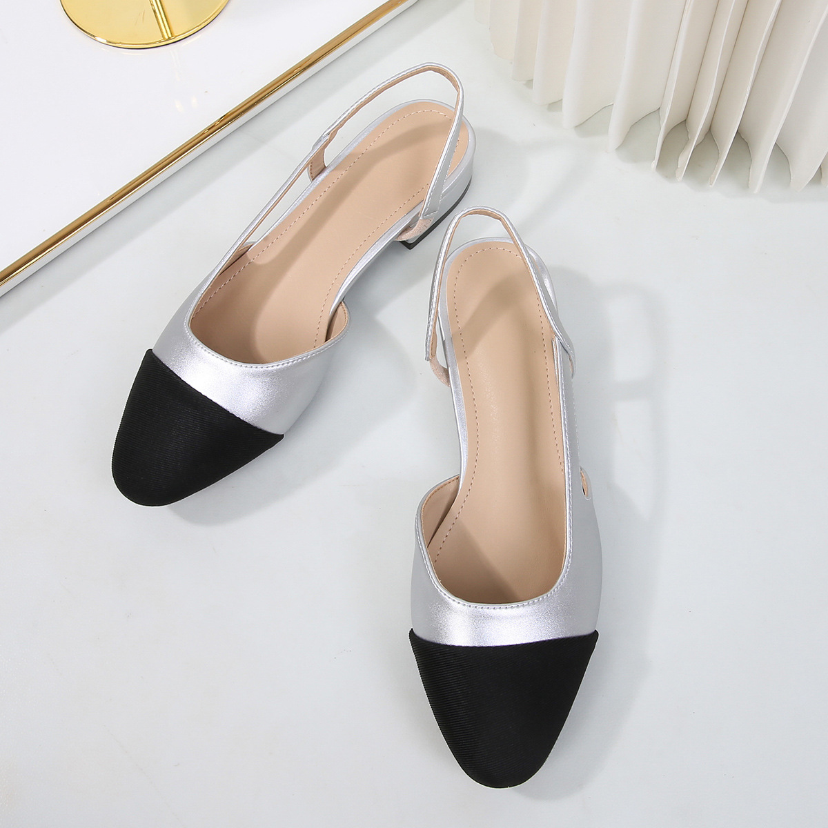 El Comercio exterior transfronterizo más el tamaño de las mujeres de los zapatos de tacón bajo de nuevo vacío cerrado toe sandalias de las mujeres planas de tacón alto del bloque del color del talón zapatos de una sola capa Mediados de zapatos de tacón