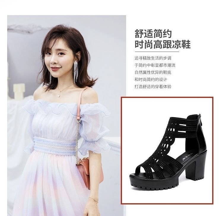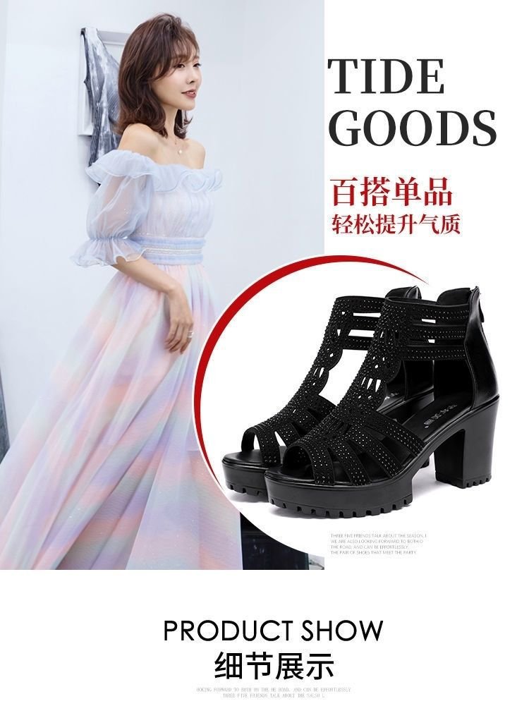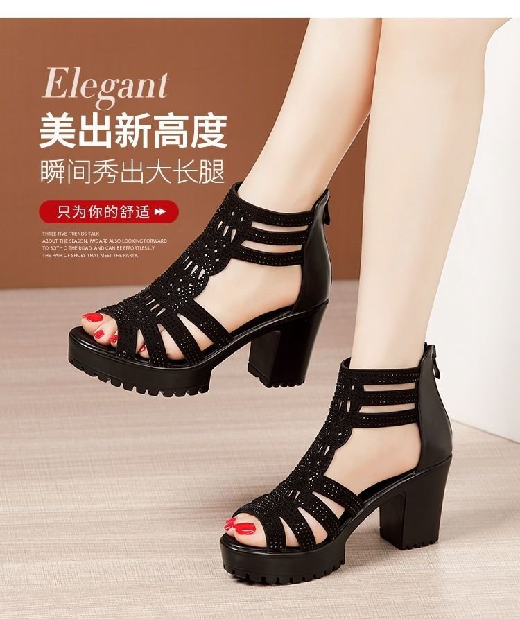 Sandalias de 48 horas para mujer de tacón grueso nuevo estilo antideslizante boca de pez tacón medio-alto zapatos de mujer romanos sandalias de punta abierta de suela suave para mujer