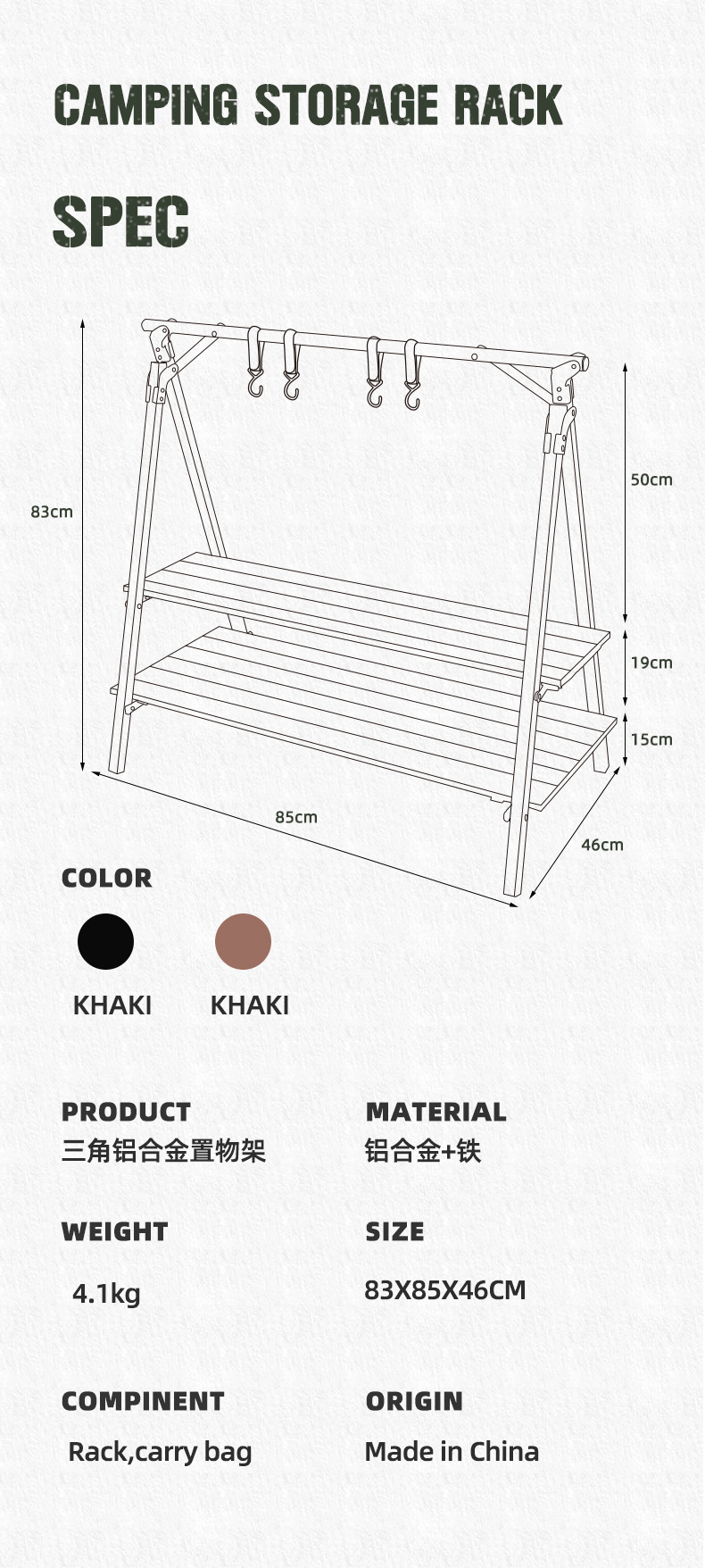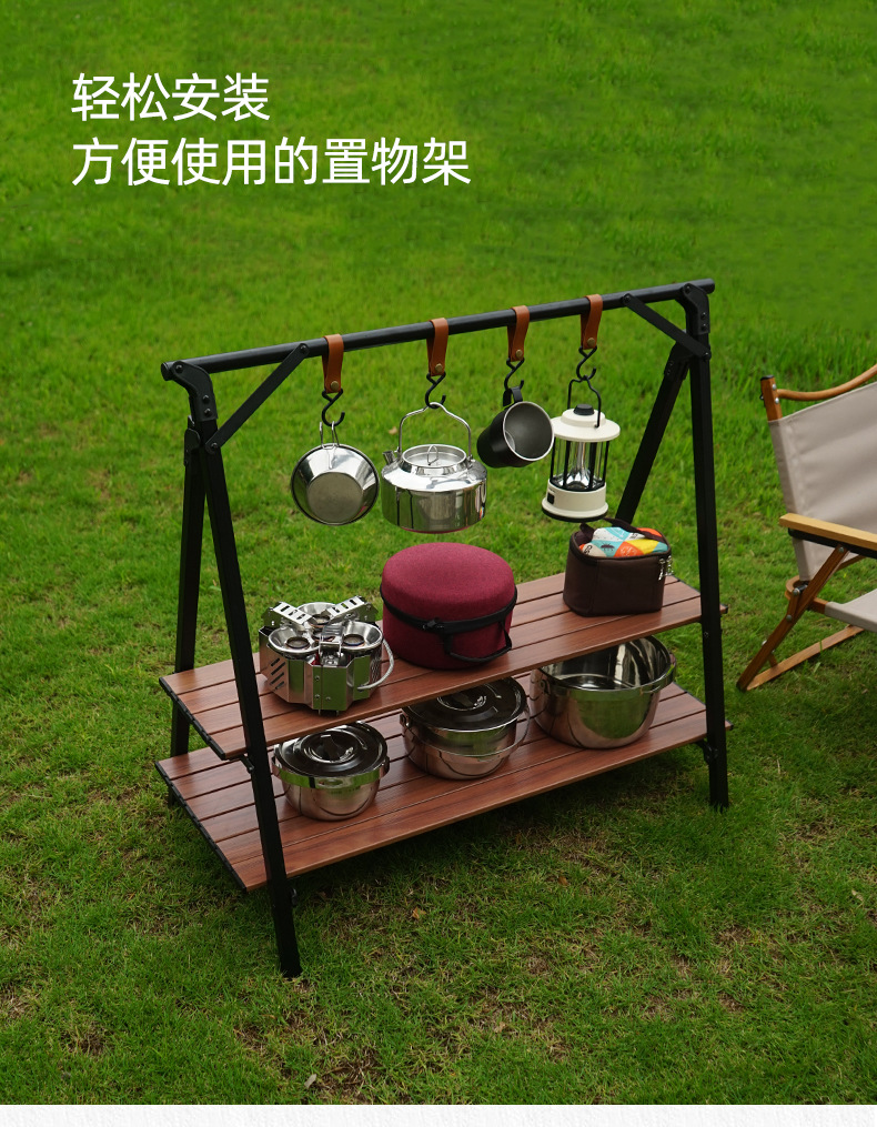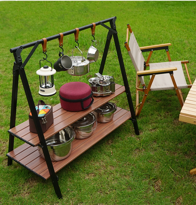 CLS aleación de aluminio al aire libre de doble capa de almacenamiento rack patio balcón almacenamiento rack auto-conducción viaje coche camping soporte portátil