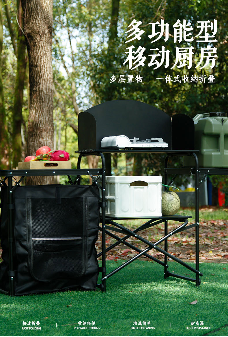 Lexiang al aire libre multi-funcional móvil cocina camping picnic partido aleación de aluminio plegable mesa de comedor con armario